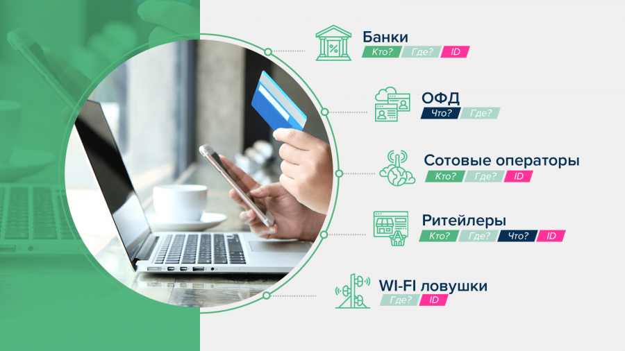 Преимущество сотовых операторов заключается в сконцентрированности рынка: четыре крупные компании «поделили» между собой жителей страны, тогда как рынок финансовых услуг — насыщенный и размытый. Но телеком-операторы пока не обрабатывают информацию из push-уведомлений банковских приложений, а с недавнего времени в мобильных приложениях некоторых банков помимо информации о совершенных транзакциях стали появляться и сведения о структуре чеков. Пока нет точной информации, за счет чего, но скорее всего, из-за партнерства с ОФД. Так что банки и телеком-операторы — два равнозначных поставщика альтернативных знаний, но с разной долей покрытия рынка: телекомы видят шире.