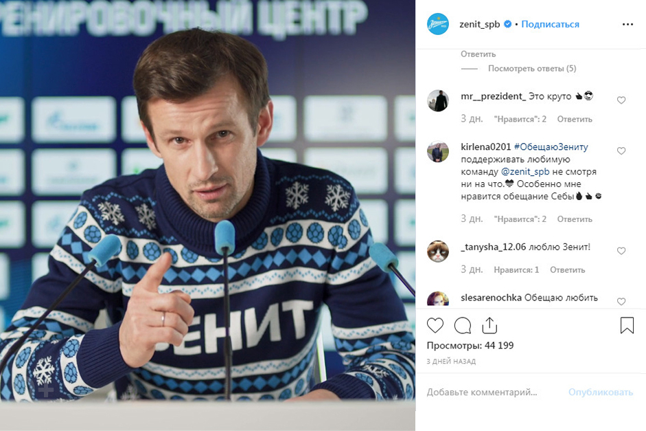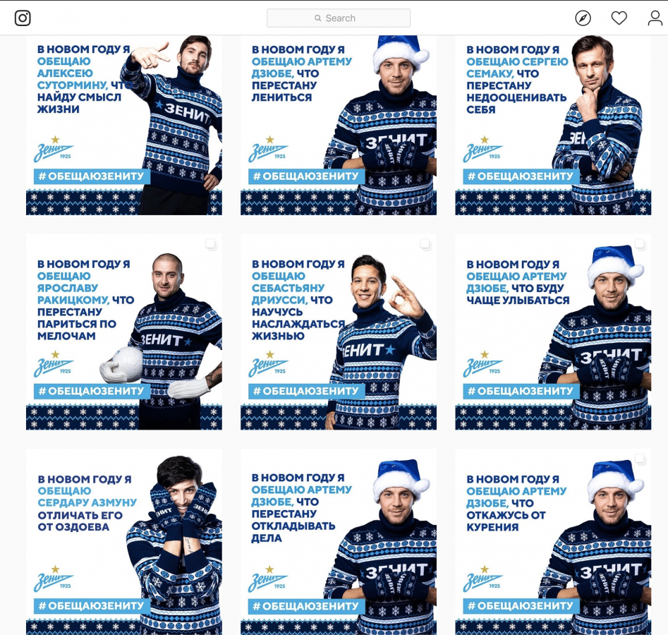 Используя хэштег #ОбещаюЗениту, пользователи могут поделиться своими новогодними обещаниями в социальных сетях.