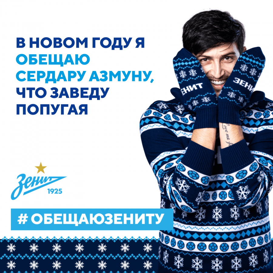 В праздничном новогоднем ролике игроки основного состава команды дали свои обещания всем болельщикам сине-бело-голубых. А капитан «Зенита» Бранислав Иванович призвал болельщиков последовать примеру игроков и дать обещания футболистам на специальном сайте кампании.