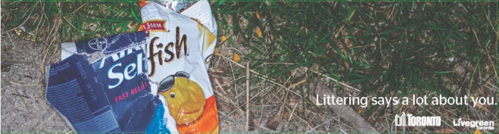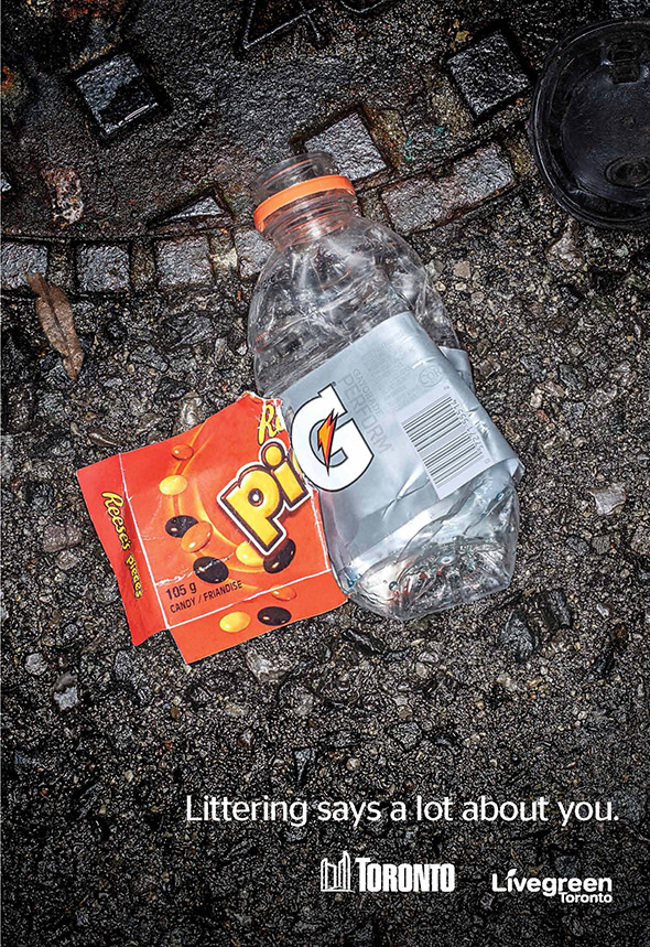 Канадский город Торонто запустил креативную социальную кампанию, направленную против мусора на улицах. Проект, получивший название «Мусор многое говорит о вас», представляет собой серию принтов, на которых упаковки различных продуктов образуют обидные слова типа «свинья», «тупица» или «эгоист». Как посчитали многие местные жители, слишком обидные, но креаторы уверены - цель оправдывает средства.