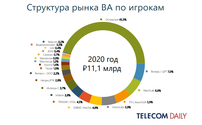 Информационно-аналитическое агентство TelecomDaily проанализировало российский рынок видеоаналитики (ВА) и оценила один из ее сегментов — облачную видеоаналитику (ОВА). По итогам 2020 года объем рынка ВА в России составил 11,1 млрд руб., что на 14,2% больше, чем годом ранее.