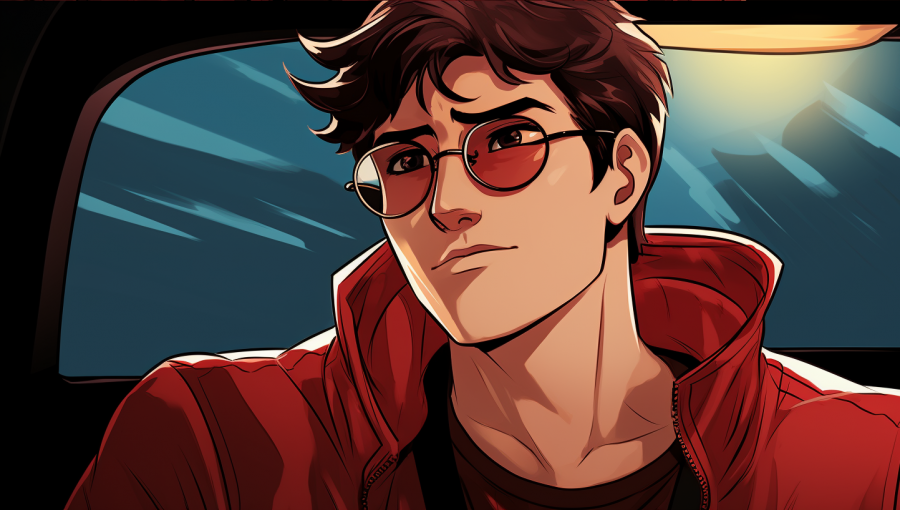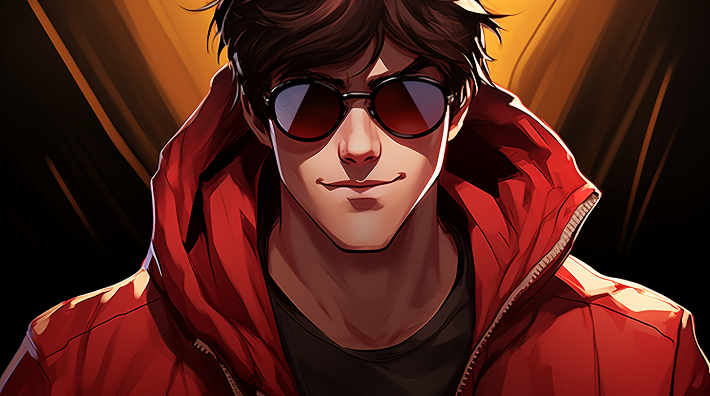 Здесь важным стал тот момент, что для персонажа необходимо прописывать ключевые детали, которые MJ опускает при создании — это красные линзы очков и очки как таковые. Для этого, после ссылки на референс, мы везде добавляли man in red lense glasses, что решило проблему.