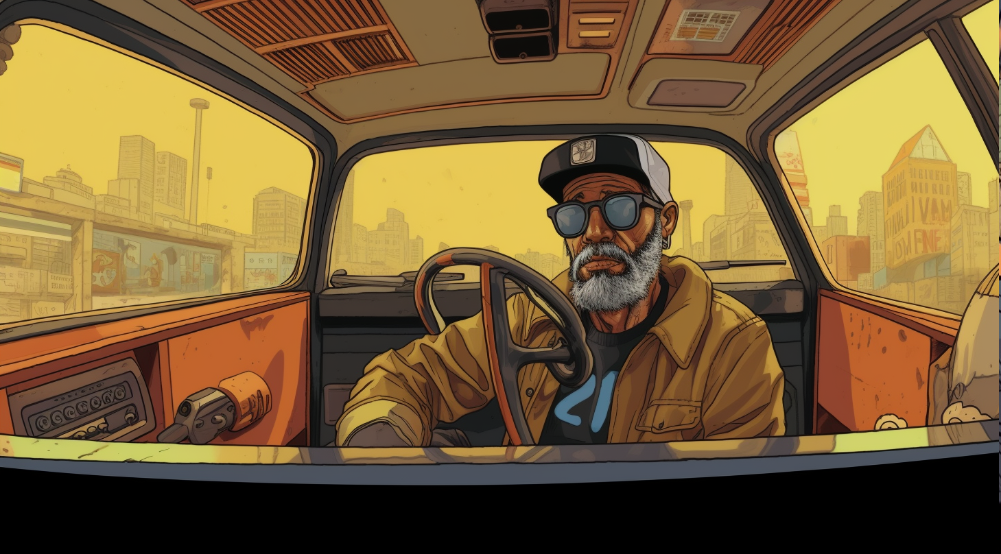 При создании диалога между таксистом и главным героем мы столкнулись с другой проблемой — это ракурсы. Описания side view или backside view никак не помогали делу, поэтому к первичному описанию backside view in a car, мы добавили view from backside passenger, после чего мы сохранили схожесть персонажа на всех кадрах и получили нужный нам ракурс.
