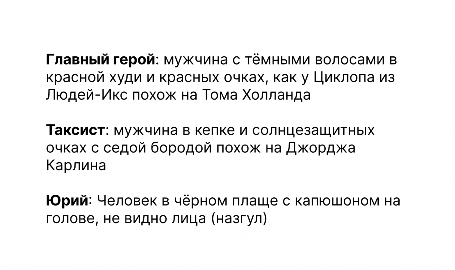 Изначально мы определили для себя визуальное описание для каждого действующего лица комикса.