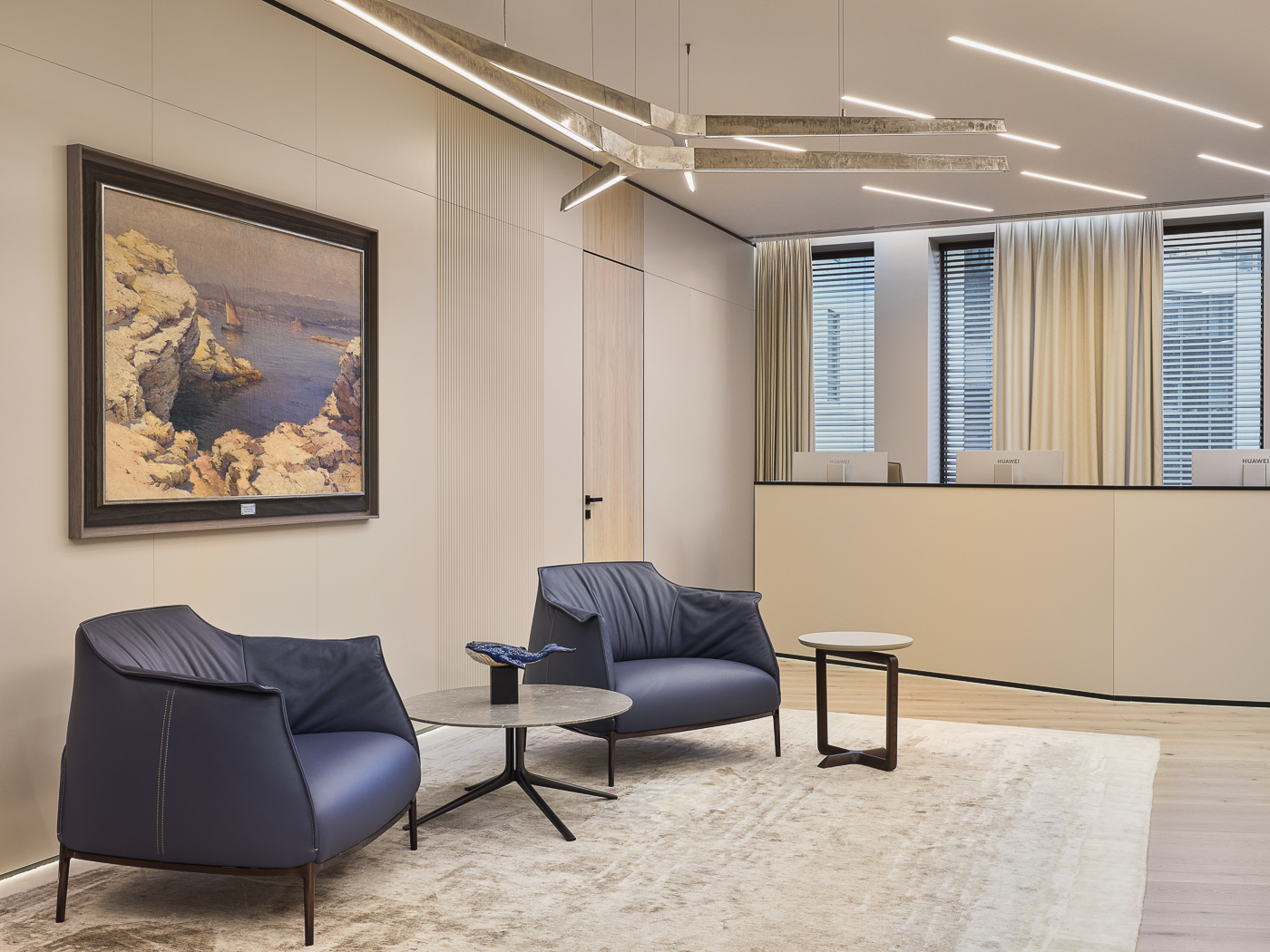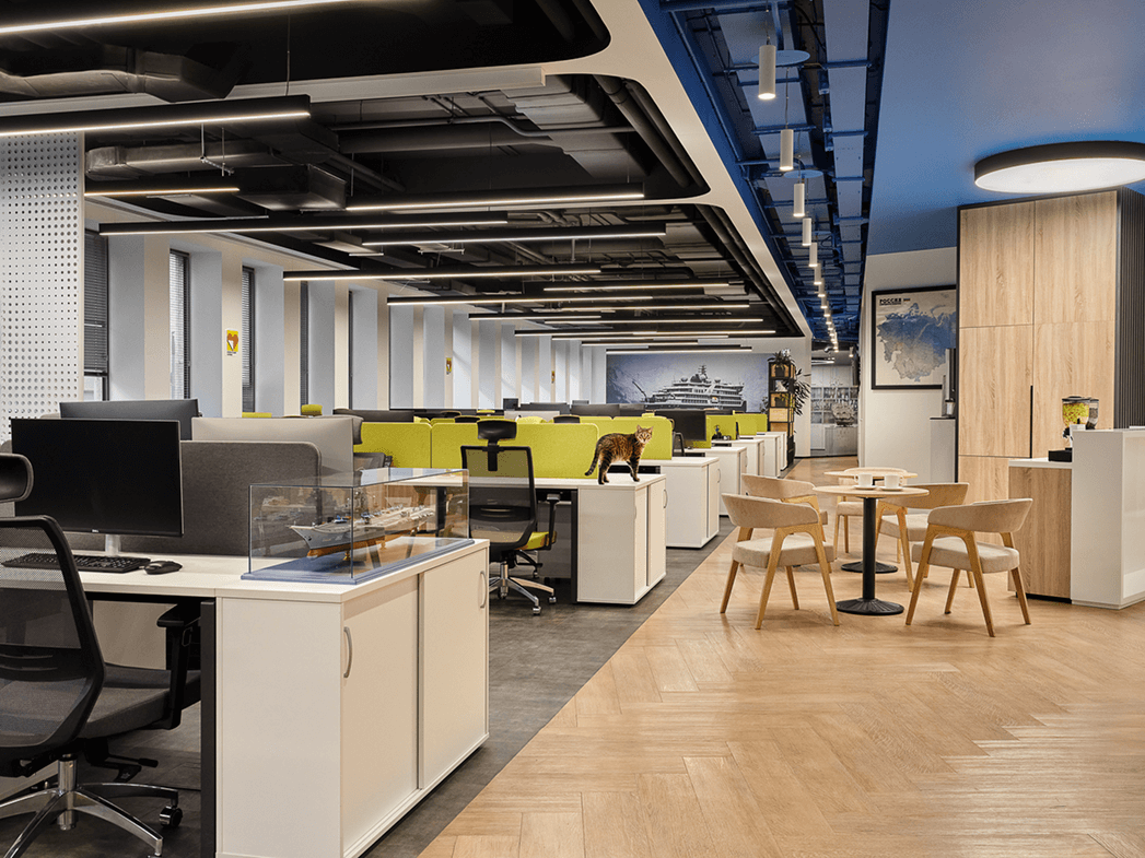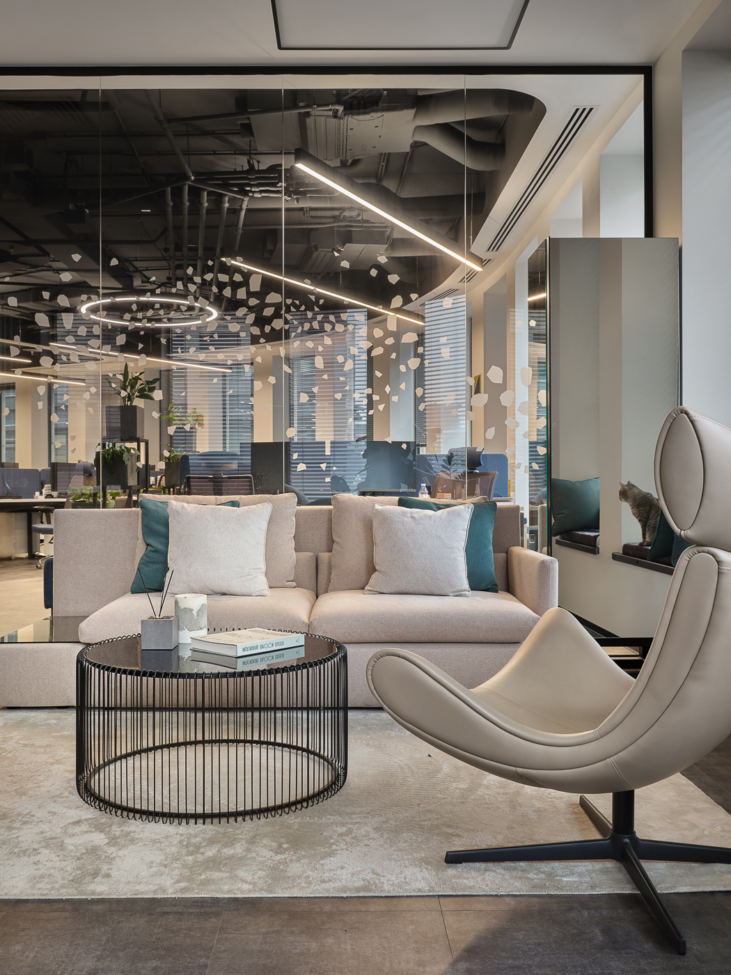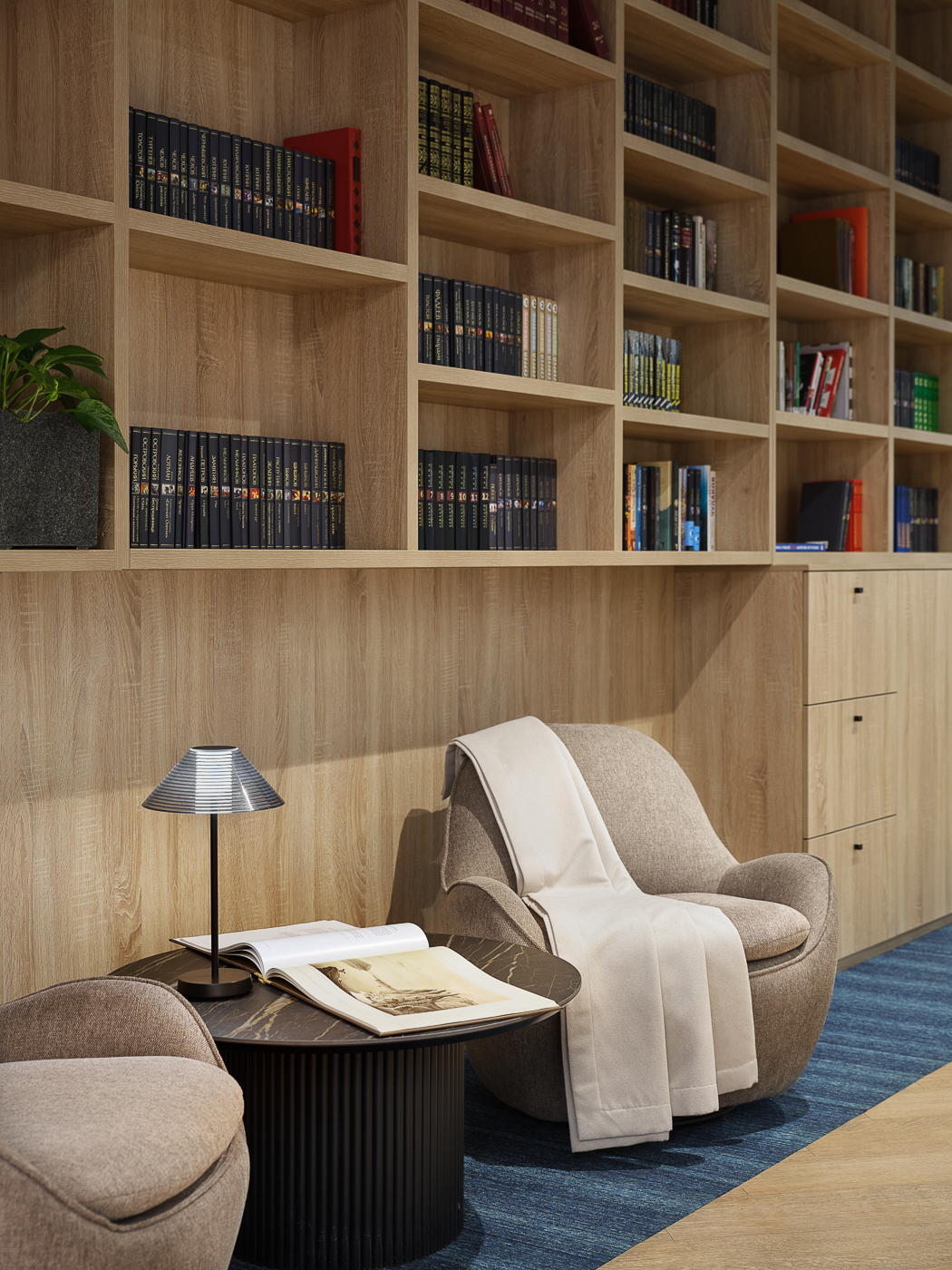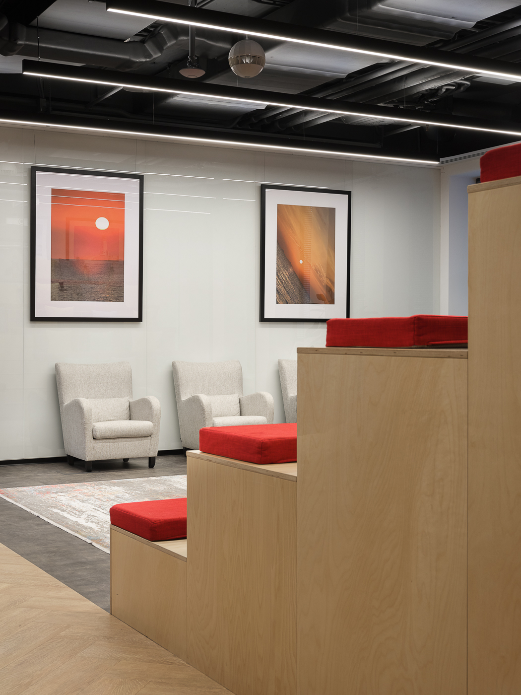 Финансисты, бухгалтерия, юристы и HR-команда занимают закрытые от мира опен-спейса пространства. Коллегам нужна тишина и приватность. Это важно, когда работаешь с цифрами и с любого вида конфиденциальной информацией. Также в офисе много удобных и уютных переговорок для встреч и совещаний. Переговорные названы именами писателей: Константин Симонов, братья Стругацкие, Юлиан Семенов, Василий Аксенов, Артур Хейли, Эрих Мария Ремарк, Клиффорд Саймак. Их интерьер рассказывает о произведениях авторов постерами и картинами, выполненными и оформленными индивидуально.