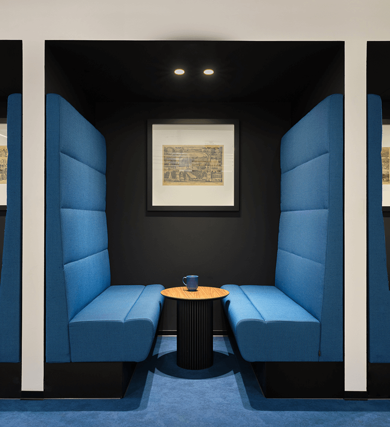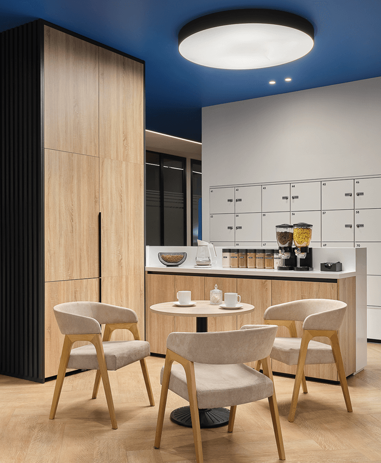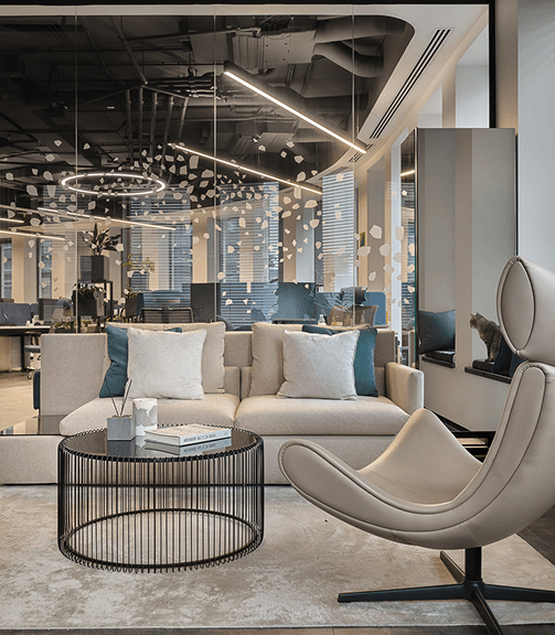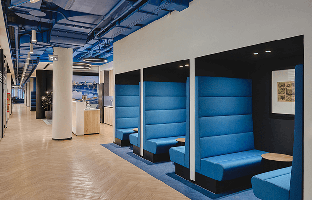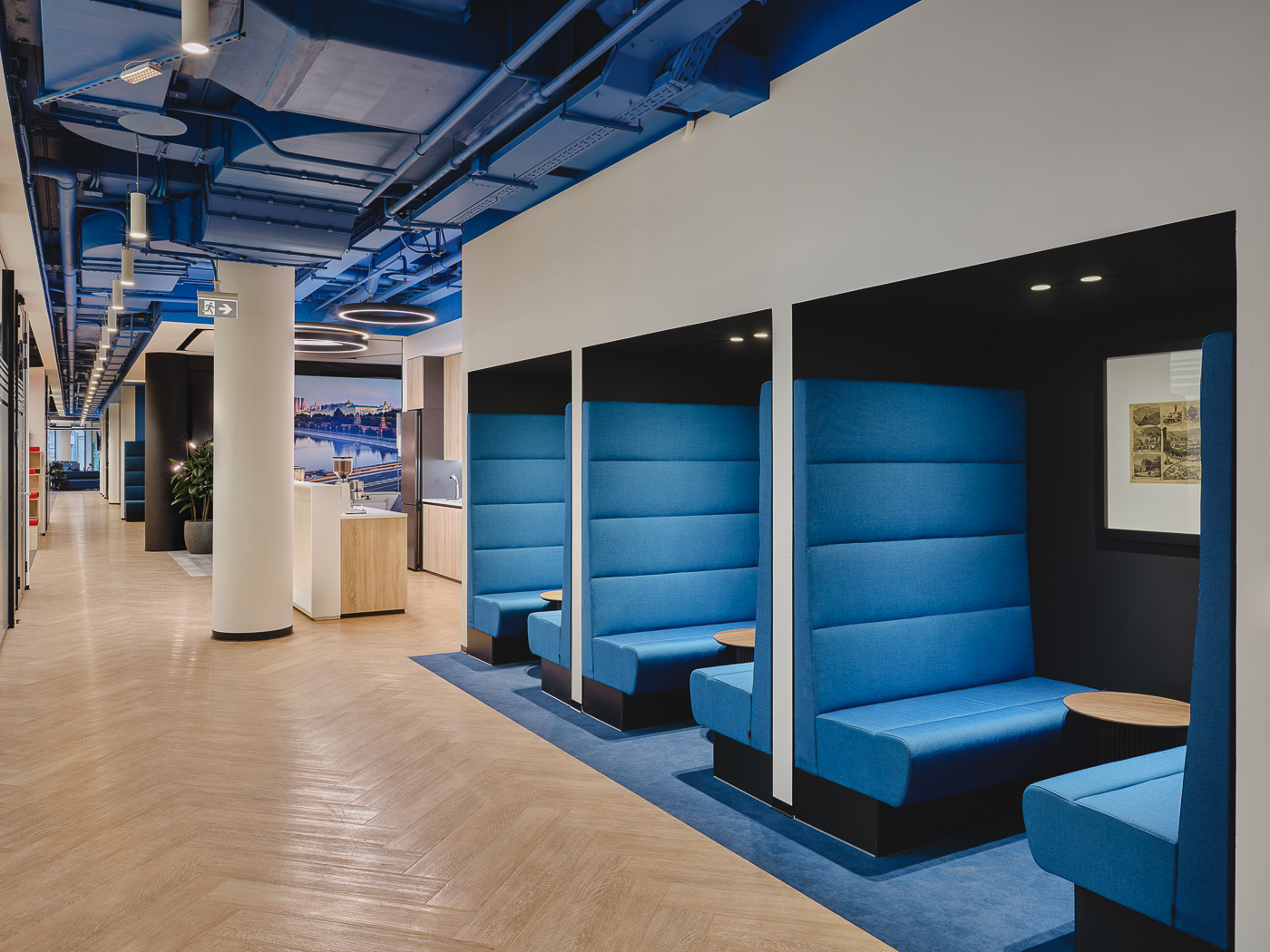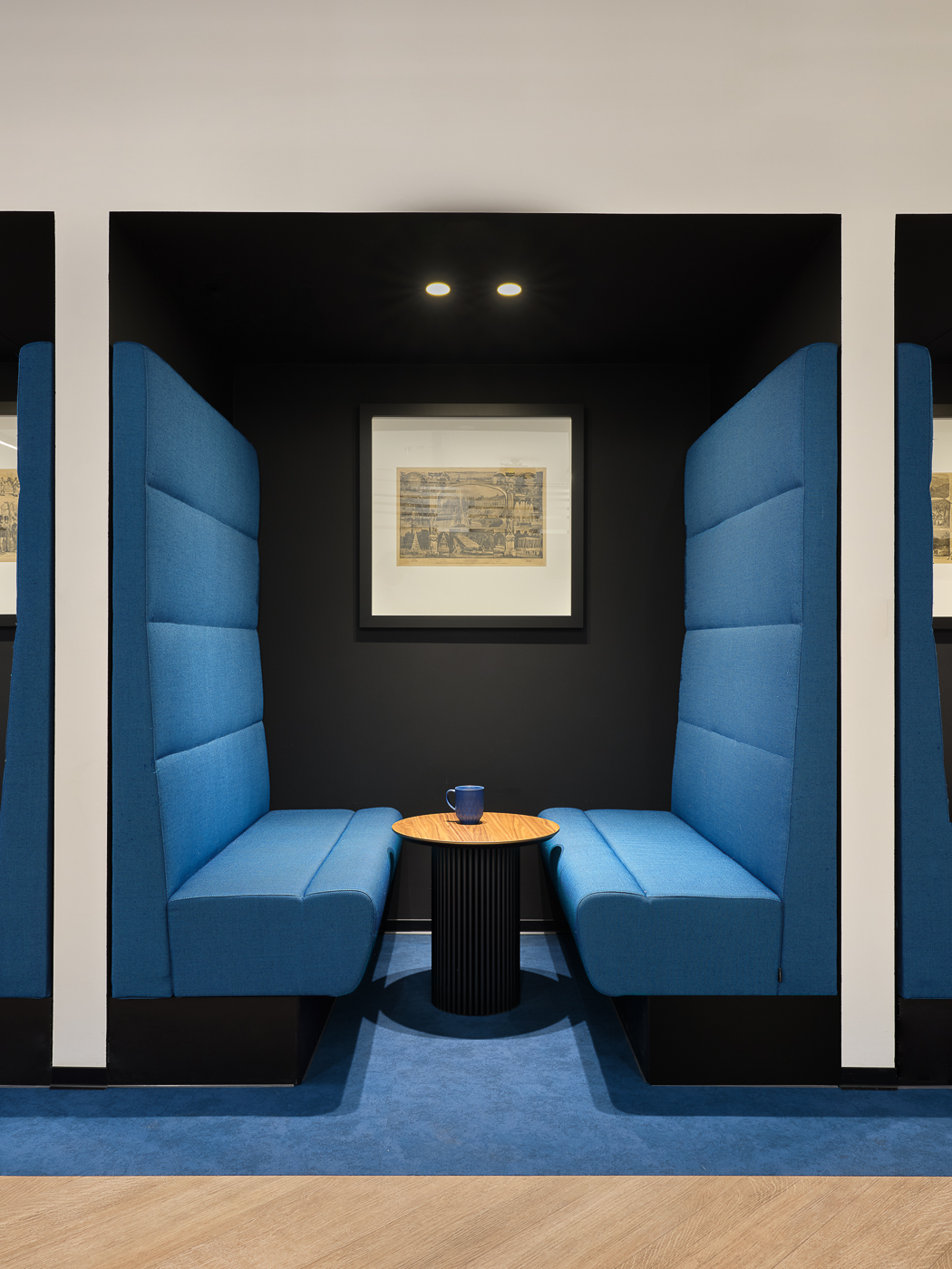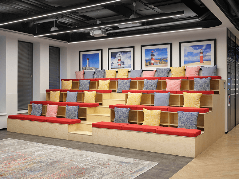 Финансисты, бухгалтерия, юристы и HR-команда занимают закрытые от мира опен-спейса пространства. Коллегам нужна тишина и приватность. Это важно, когда работаешь с цифрами и с любого вида конфиденциальной информацией. Также в офисе много удобных и уютных переговорок для встреч и совещаний. Переговорные названы именами писателей: Константин Симонов, братья Стругацкие, Юлиан Семенов, Василий Аксенов, Артур Хейли, Эрих Мария Ремарк, Клиффорд Саймак. Их интерьер рассказывает о произведениях авторов постерами и картинами, выполненными и оформленными индивидуально.