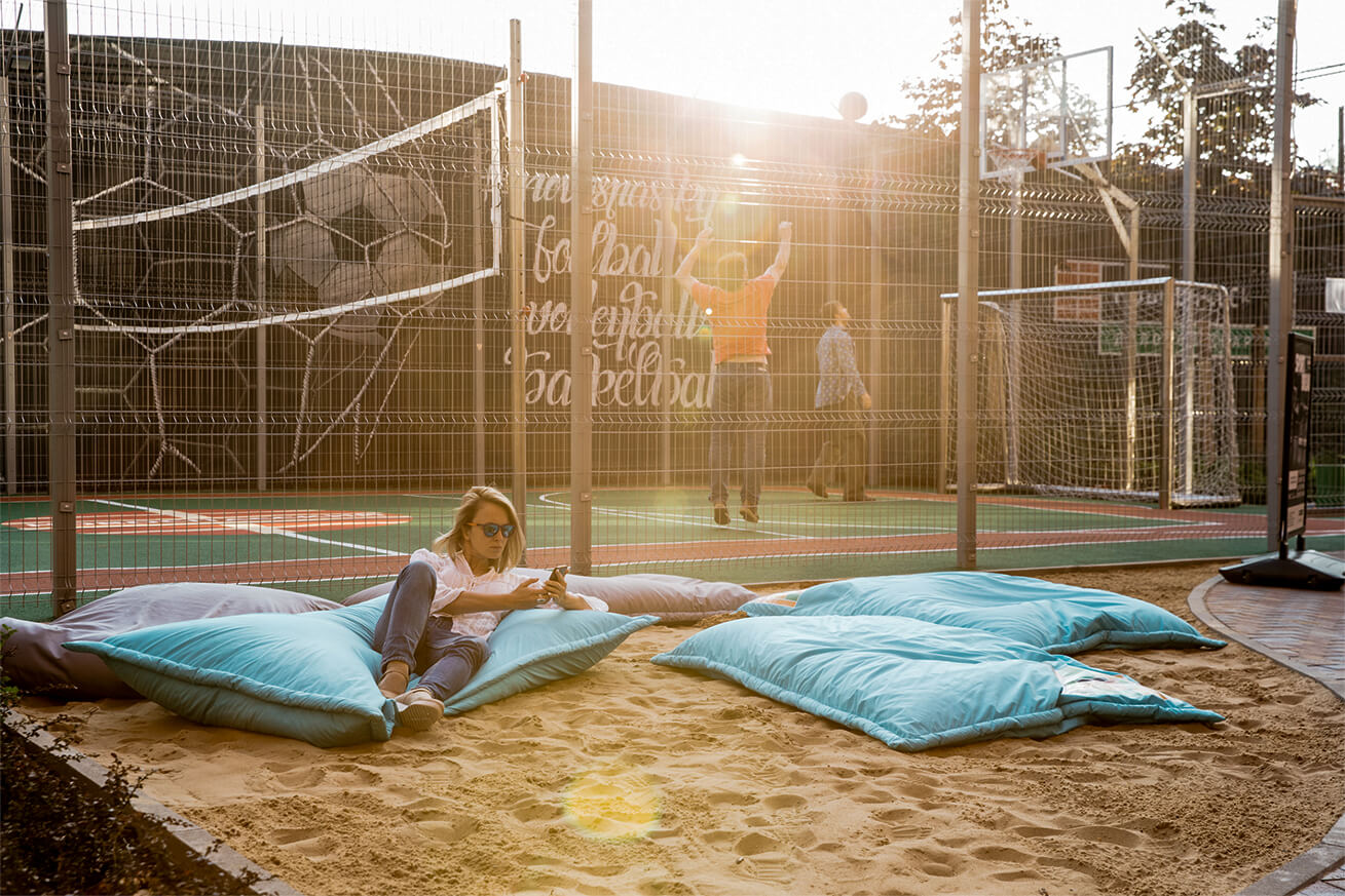 А на Backyard «Новоспасского» 24/7 открыта мультиспортивная площадка для командной игры в баскетбол, волейбол, мини-футбол.