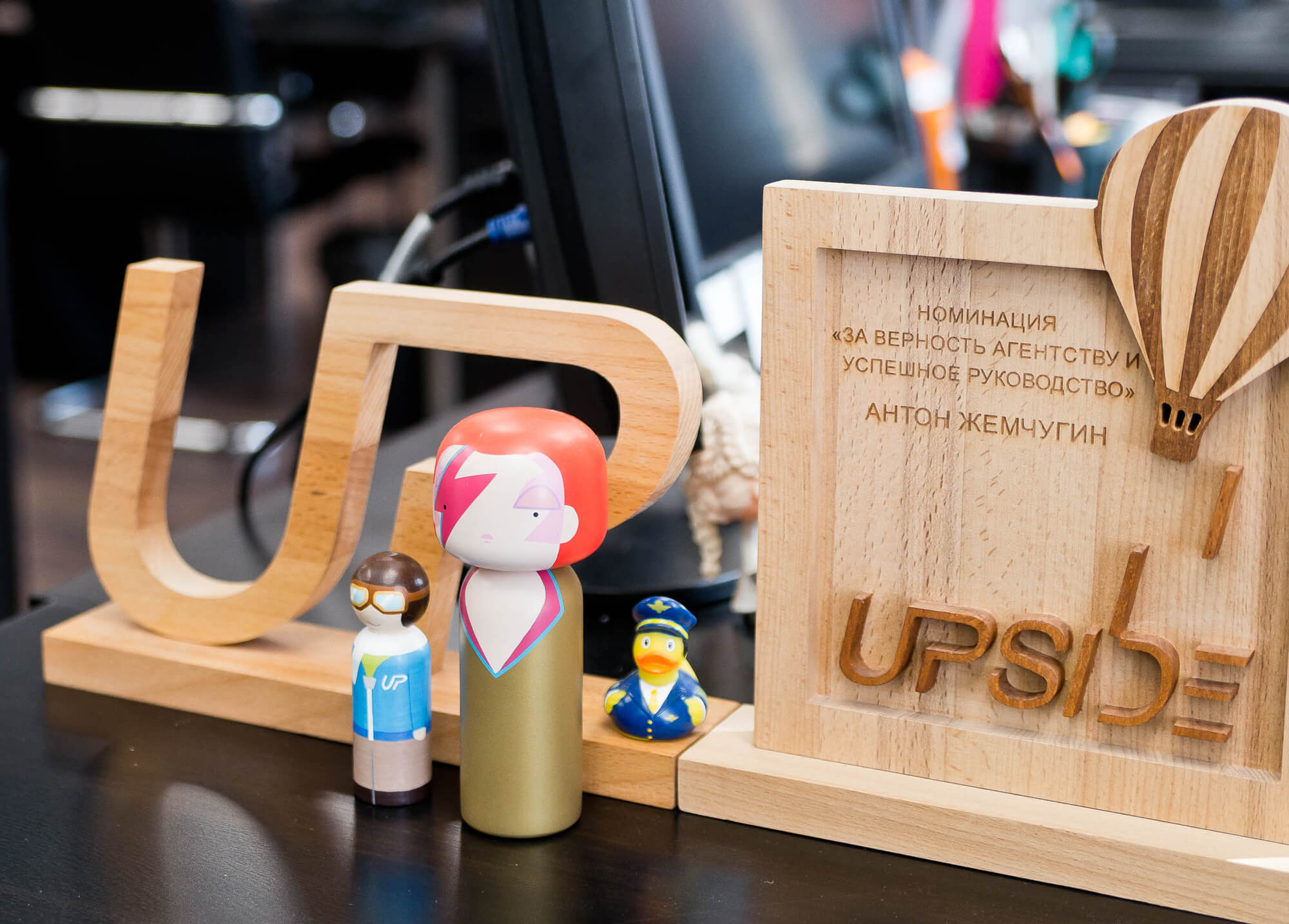 Символы UPSIDE — воздушный шар и фигурка пилота, они в офисе повсюду. На наш вопрос, почему не самолет и не ракета, ребята ответили: «Аэростат находится в свободном полете, который ничто не ограничивает. Свобода, возможность творчества и самореализации — то, к чему мы стремились, создавая агентство, и они по-прежнему в наших приоритетах. А еще воздушный шар дает возможность в полной мере наслаждаться полетом, в нашем случае — это радость от дела, которым мы занимаемся».