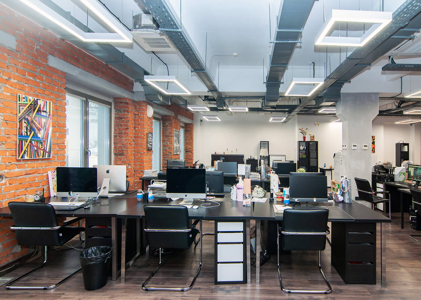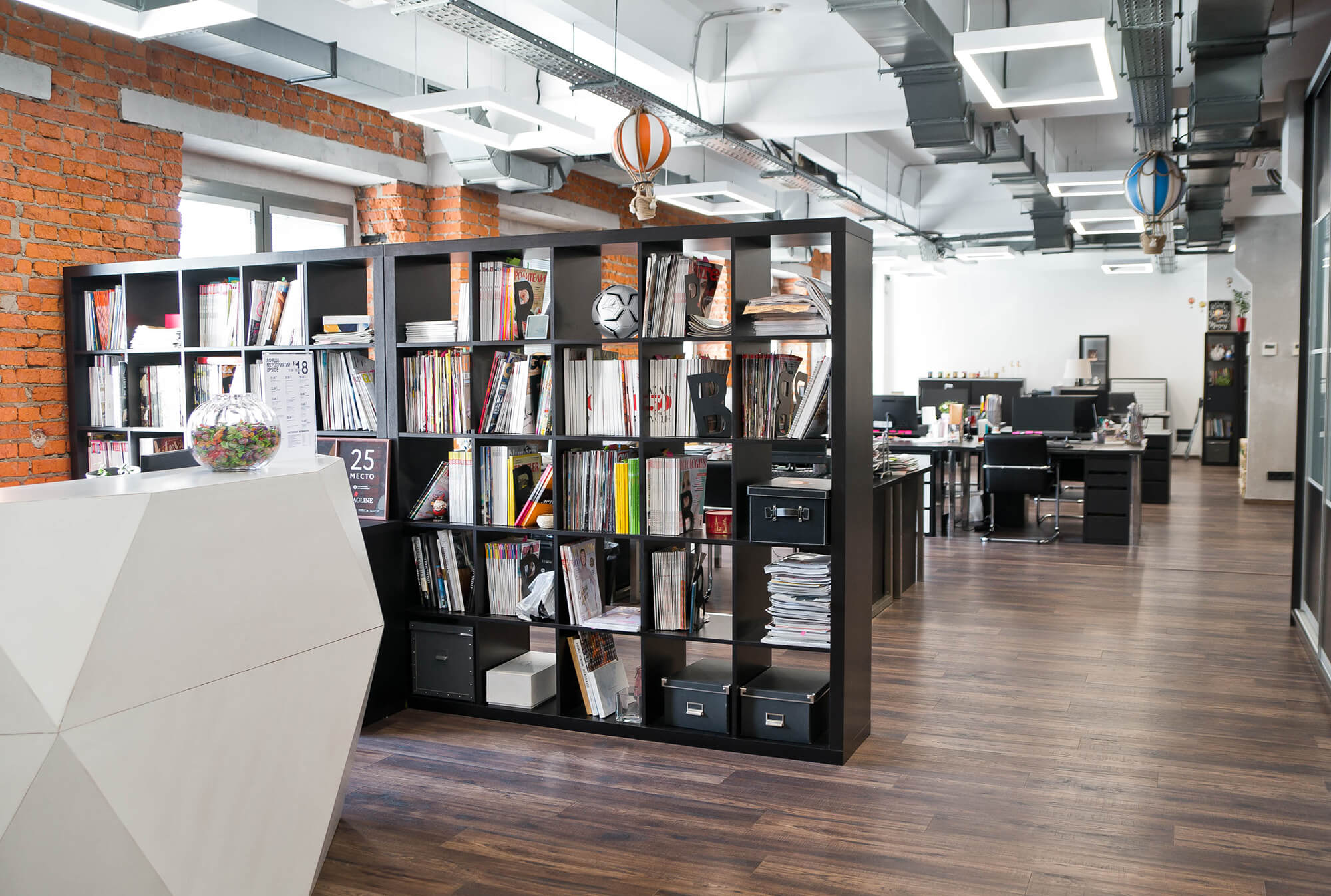 Поднявшись на лифте на 4-й этаж, сразу же обнаруживаешь себя в агентстве: никаких дверей, звонков и прочих формальностей, словно пришел в гости к старым приятелям. Всё пространство оформлено в стиле лофт. Помимо ресепшена, переговорной и кухни, здесь есть шоурум, фотостудия, но нет кабинетов директоров! Генеральный директор и управляющие партнеры сидят вместе с командой в одном большом опенспейсе.
