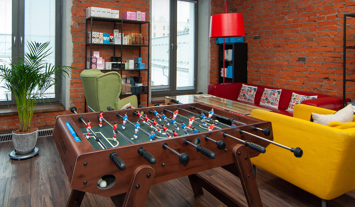 Здесь же стоит стол для кикера, в который креаторы «неистово рубятся» после насыщенных рабочих будней. Диджейская установка тоже не красоты ради. Во время агентских вечеринок за нее становятся главный меломан агентства гендиректор Антон, главный бухгалтер Элина, в прошлом популярный диджей, и event-менеджер Сергей, не понаслышке знакомый с самыми трендовыми миксами в московских клубах.