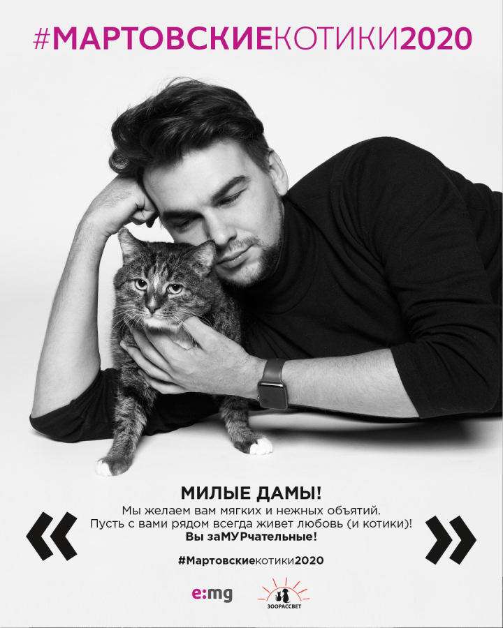 Главными героями стали представители сильного пола e:mg и питомцы кошачьего приюта. Началу проекта послужила одна из корпоративных рубрик, где сотрудники делятся своими хобби и увлечениями. Восторженные читательницы буквально взорвали Instagram комментариями к постам о любимых занятиях мужчин e:mg: «Вау! И это ваши сотрудники?! Покажите нам всех!».