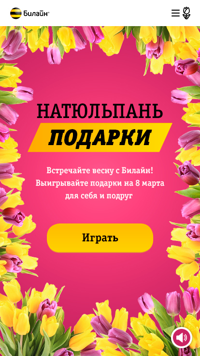 В преддверии главного праздника весны «Билайн» решил поздравить своих клиентов и сделать им не только привлекательное предложение, но и порадовать приятными подарками. 6 марта каждый абонент получил яркое приглашение принять участие в интерактивной игре, результатами которой можно было поделиться с друзьями и близкими.