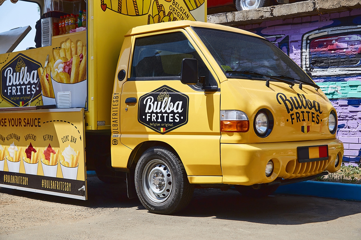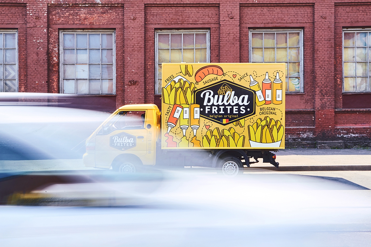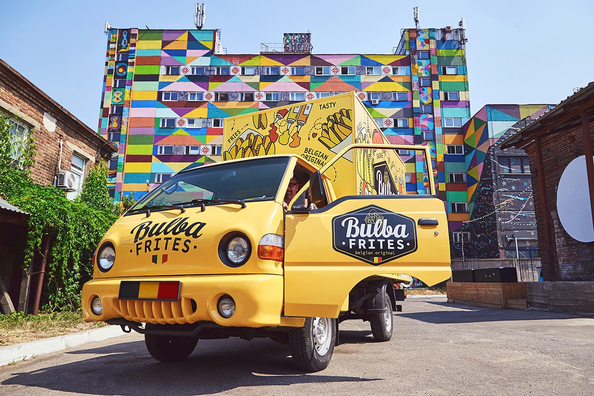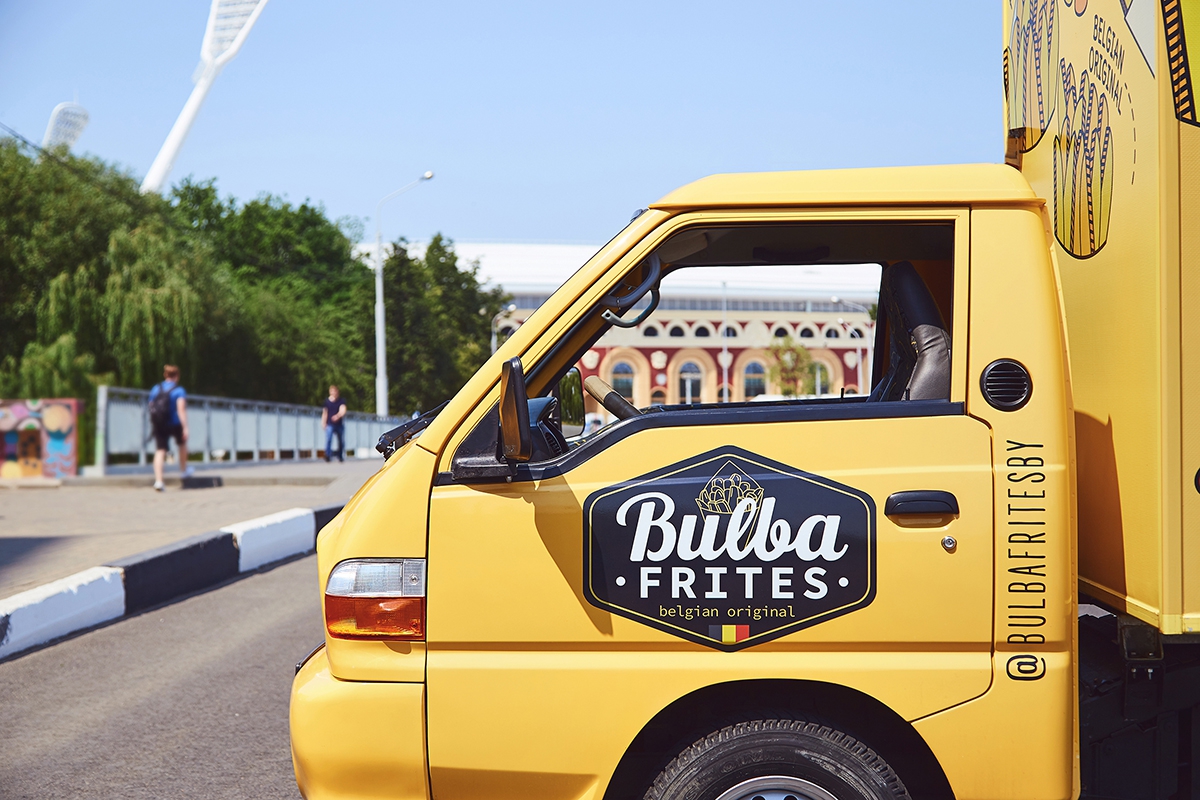 Bulba Frites занимается приготовлением и продажей картофеля по-бельгийски в фудтраках и мобильных модулях. Компания нуждалась в отстройке от конкурентов и привлечении новой аудитории, поэтому обратилась к агентству Fabula Branding за созданием яркого визуального образа. Актуальный формат стритфуд, который представляет ТМ, диктовал свои требования к оформлению: торговые объекты должны быть стильными, узнаваемыми и понятными потребителю.