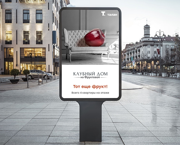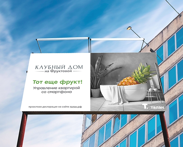 Разработать рекламную кампанию для жилого комплекса на Фруктовой улице необходимо было так, чтобы спозиционировать проект в коммуникациях в качестве представителя бизнес-класса, а также выделиться среди конкурентов за счёт более свежего и яркого подхода.