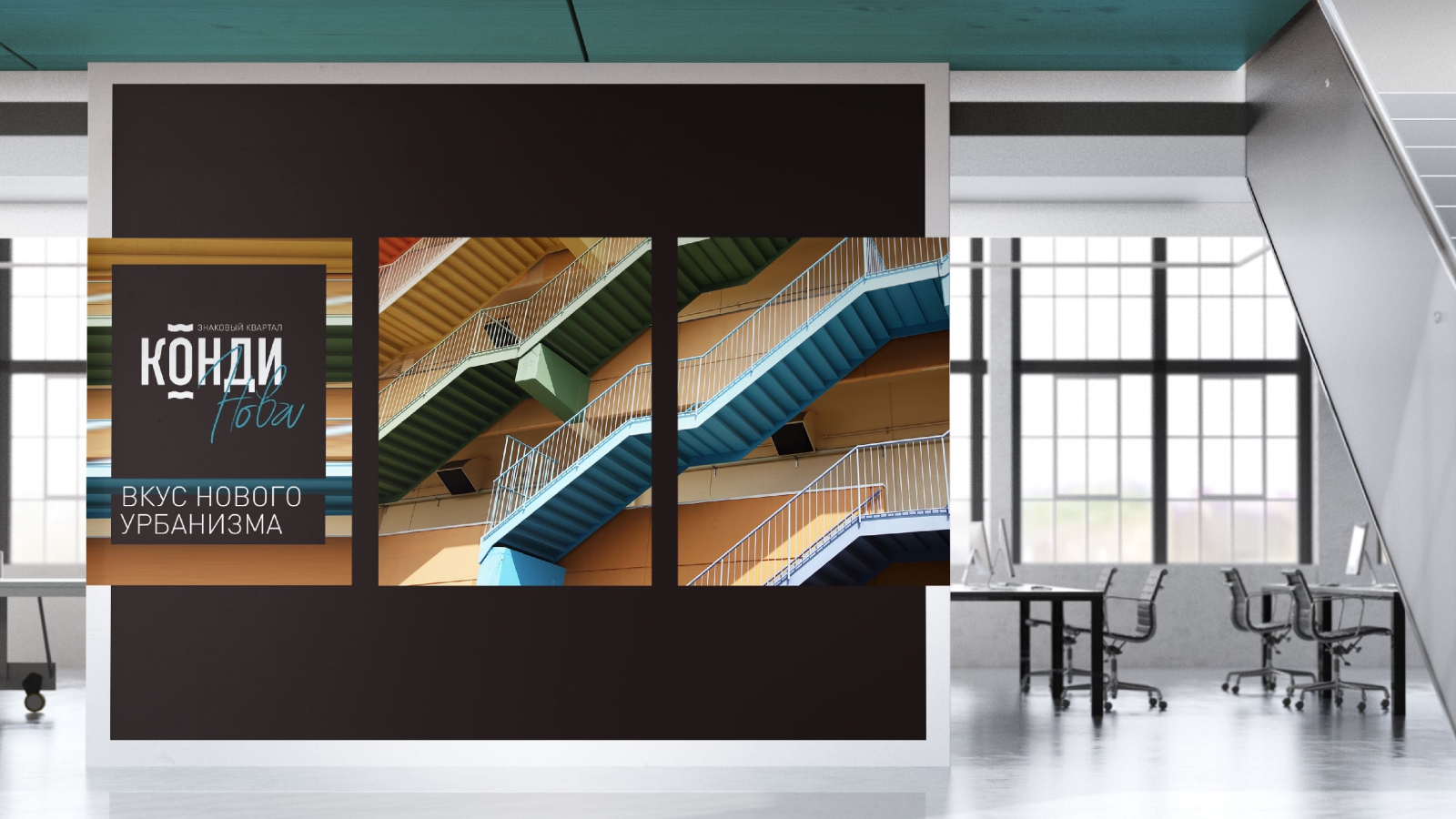 Название «Конди Нова» заимствует исторический бэкграунд кондитерской фабрики «Конди». Такой приём позволит установить моментальную связь с конкретной локацией в сознании потенциального покупателя, и в то же время сообщить, что данная территория — нечто новое. Индивидуальные названия домов соответствуют общей концепции и помогают развивать образный ряд проекта, чтобы поддерживать интерес публики на длинной дистанции.