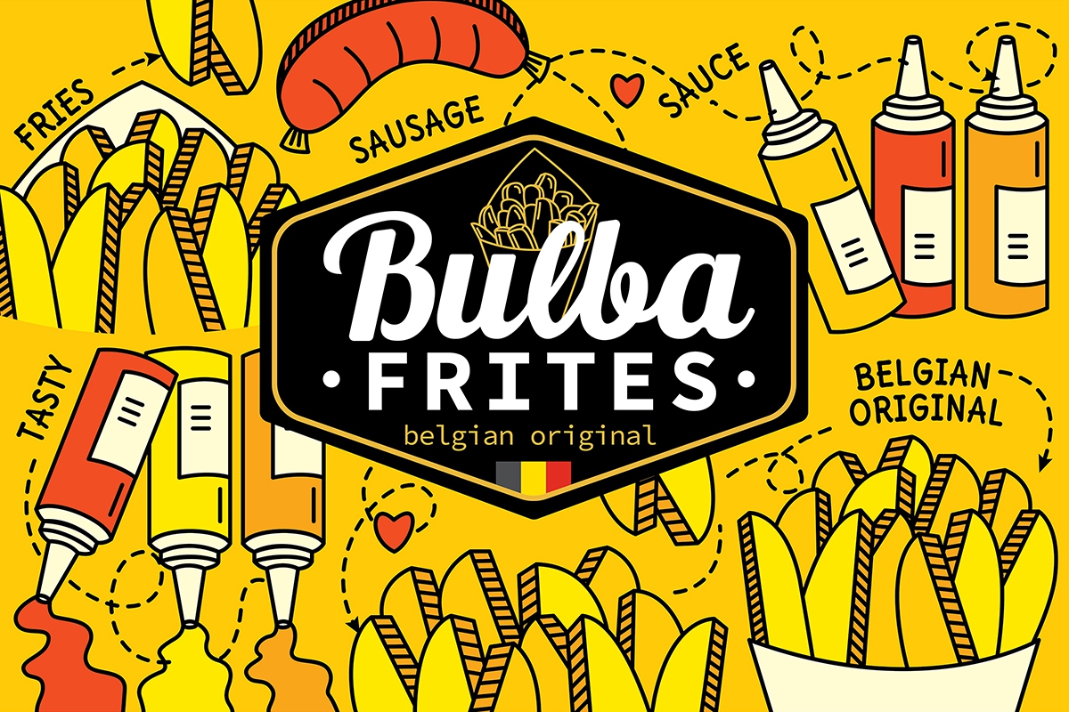 Лаконичные скетчи и бельгийский флаг в айдентике стритфуд-сети Bulba Frites от