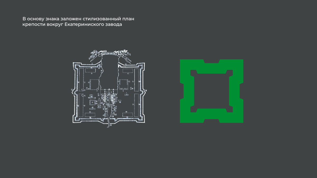 При работе над новым товарным знаком для муниципального банка дизанйеры решили ещё сильнее подчеркнуть его связь с историей города. Поэтому в основу знака был заложен стилизованный план крепости вокруг старейшего Екатерининского завода.