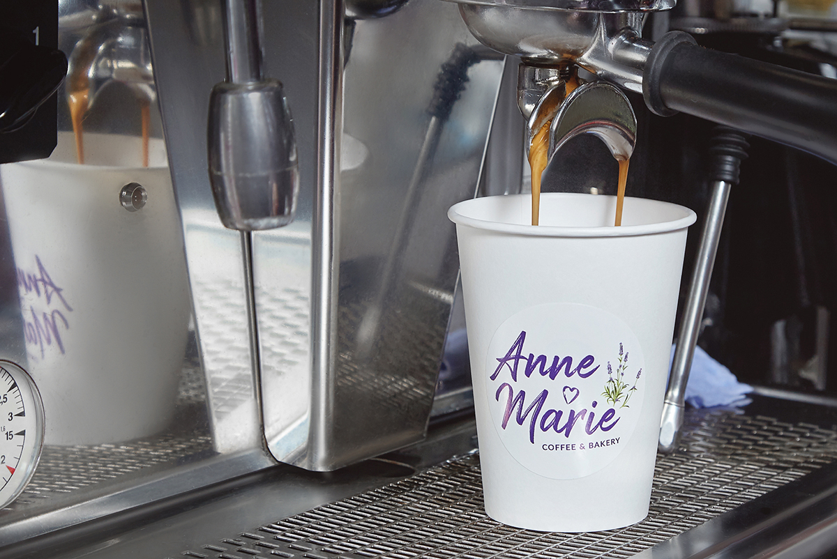 Благозвучное французское имя Anne Marie и разработанная айдентика отсылают к стилю прованс, перенося потребителей в пространство вкусной еды и размеренного отдыха на юге Франции. Изображения цветков лаванды, которые используются в оформлении корпоративных и рекламных носителей, поддерживает фирменная палитра, выполненная в оттенках фиолетового. Шрифт логотипа, стилизованный под рукописный, транслирует крафтовость продукции кофейни.