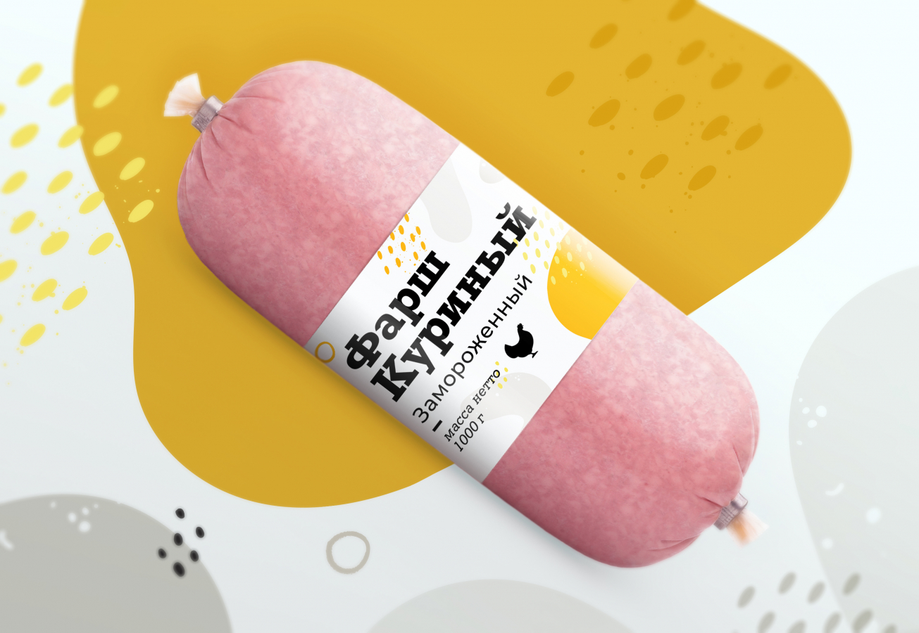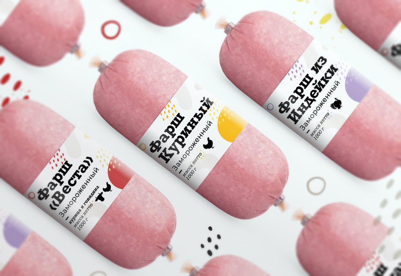 Для достижения баланса натуральности и современного подхода производителя использовали белый цвет как доминантный и другие дополнительные природные цвета. Пятнистый паттерн является метафорой к структуре фарша, специям, которые добавляются при готовке. Понятные, яркие паттерны легко тиражируются на разные SKU, при этом сохраняют узнаваемость и преемственность для всей линейки продукции.