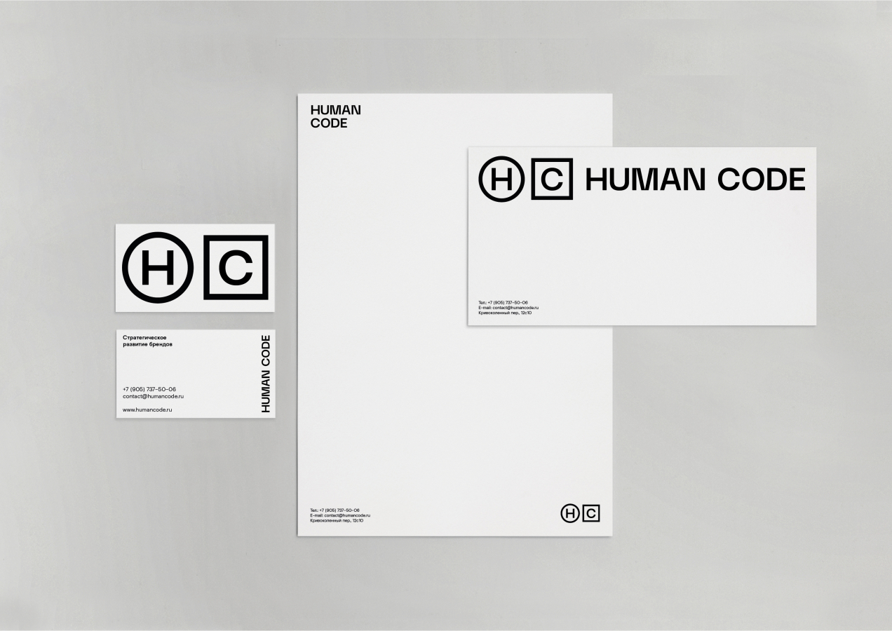 Human Code — агентство по стратегическому развитию брендов. Это позиционирование было разработано около года назад. На тот момент фирменный стиль не был наделён особыми изысками — штрих-код и написание названия. За год существования в агентстве убедились в востребованности услуг по стратегии у прямых клиентов и других агенств. Но в то же время по отзывам сам стиль был слишком невыразительным, чтобы воспринимать услуги компании не только как «умные», но и как «красивые».