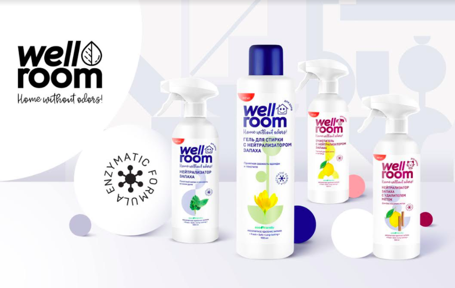 Brand hub разработал единый логотип бренда, в котором рядом с названием расположен листочек (указание на натуральность). А чтобы клиенты не путали средства для дома и для животных, были созданы отдельные значки: домик — для средств для уборки, а мордочки собаки и кошки — для устранения запаха от домашних животных. Линейки различаются по цвету: флаконы с химией для дома — синего цвета, а для уборки за животными — бордового.