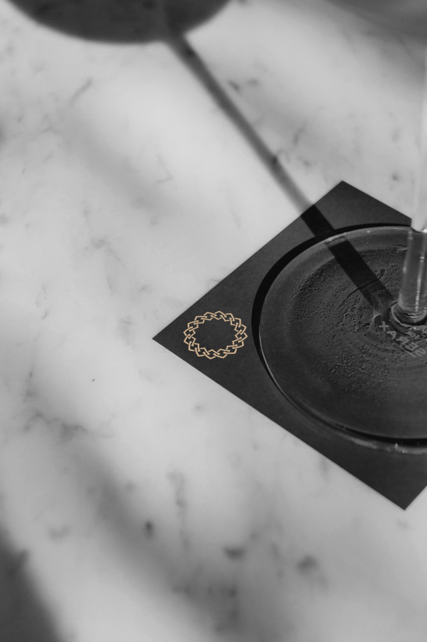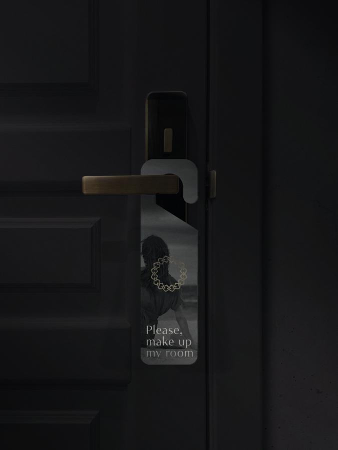 Логотип вдохновлен геометрическими формами архитектуры отеля. Знак символизирует собой гармоничную эко-систему, мир, где продуманы и сплетены в единый образ впечатления высококлассного отеля. Стиль айдентики строится на эмоциональных черно-белых фотографиях и наложении поверх фирменного знака.
