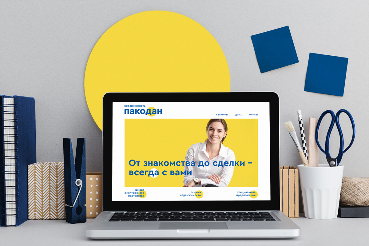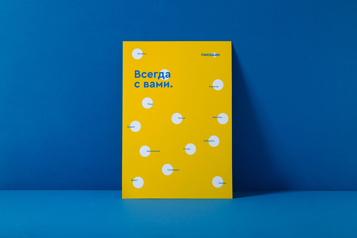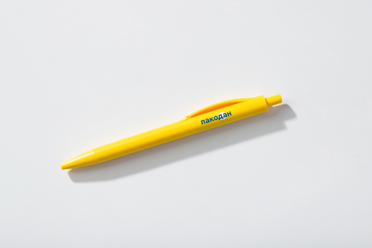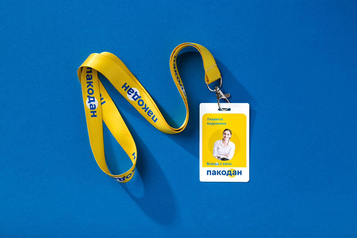 Благодаря этому появилась идея сделать частью визуального образа посыл «Да!», который присутствует в самом нейме «ПАКОДАН». Это позитивное сообщение транслирует вся айдентика — начиная со шрифтового логотипа с круглым графическим элементом-выделителем, заканчивая фирменным стилем. Основными цветами бренда остались желтый и синий, что обеспечило преемственность прежнему решению.