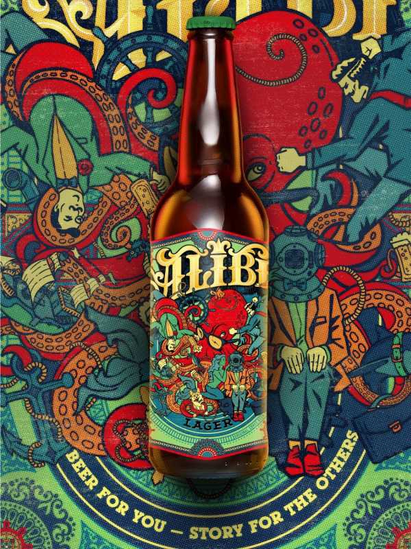 Креаторы агентства «Восход», занимаясь запуском нового бренда крафтового пива Alibi, решили обратить вниманиме на напиток не просто ярким дизайном, а целой историей, которая завязывается на его этикетках.