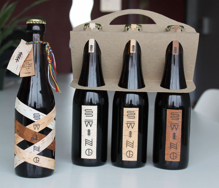 Канадская пивоварня Swing brewery решила отразить на бутылках множество культур Канады, которым приходится уживаться вместе. Для этого был приглашен эксперт не только графического дизайна в целом, но и каллиграфии в частности.