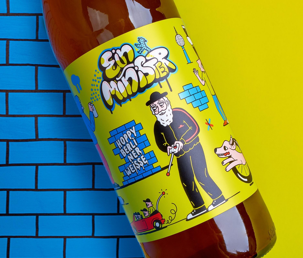 В целом, создание персонажа (или даже нескольких) и помещение его в самые разные ситуации прямо на этикетке — излюбленный прием у дизайнеров. Вот еще пара примеров удачного использования героя на бутылках пенного напитка.