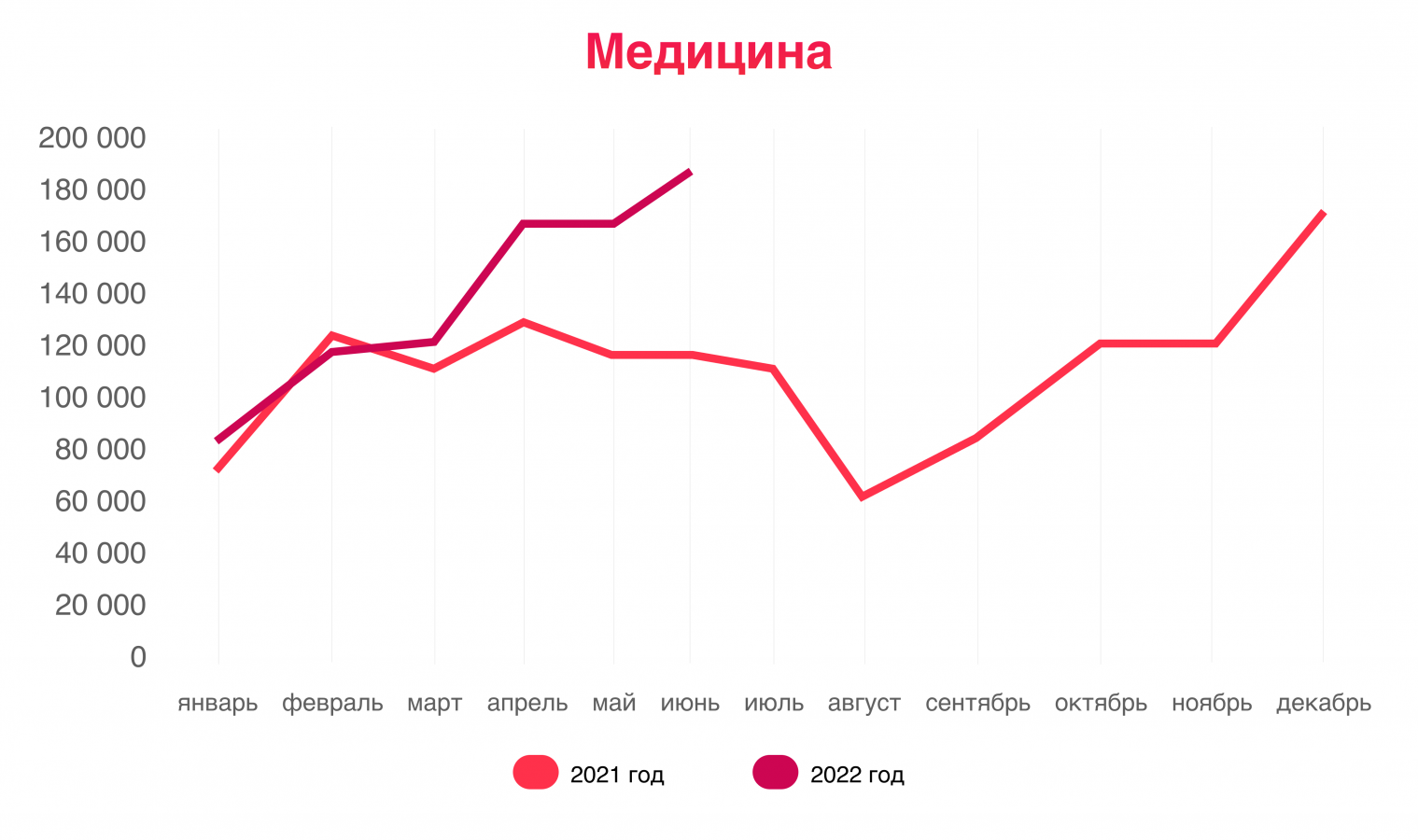 Так же, следует отметить, что с начала пандемии сегмент медицинских услуг укрепил свои позиции. Его прирост YoY составил 26%.