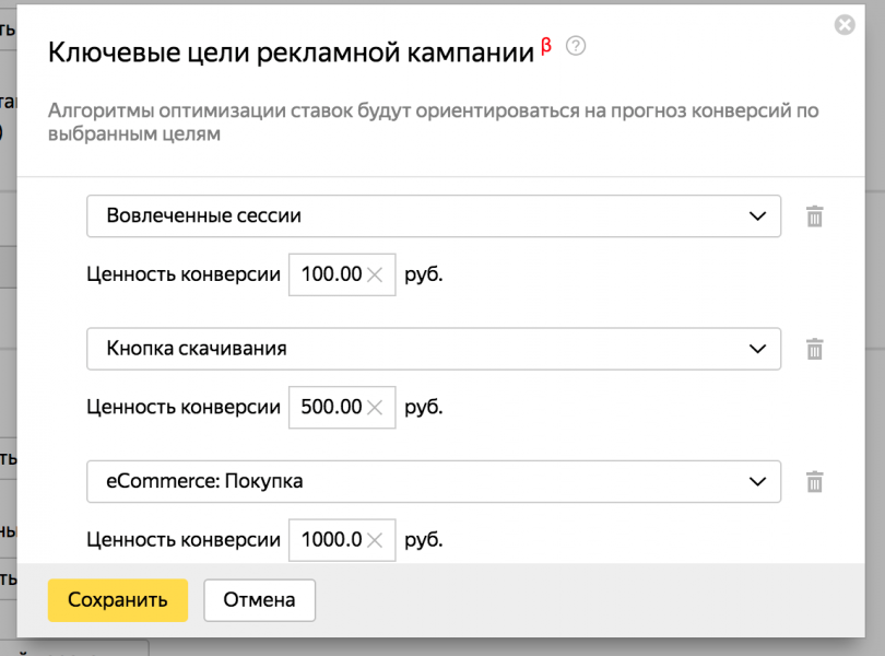 Ключевые цели в «Яндекс.Директ»