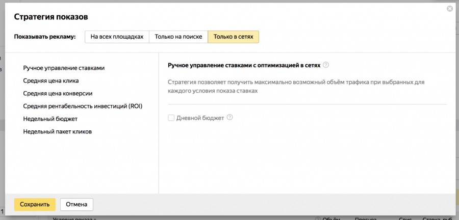 Замена стратегии «Ручное управление» на улучшенную стратегию «Ручное управление с оптимизацией в сетях» в рекламных кампаниях в РСЯ