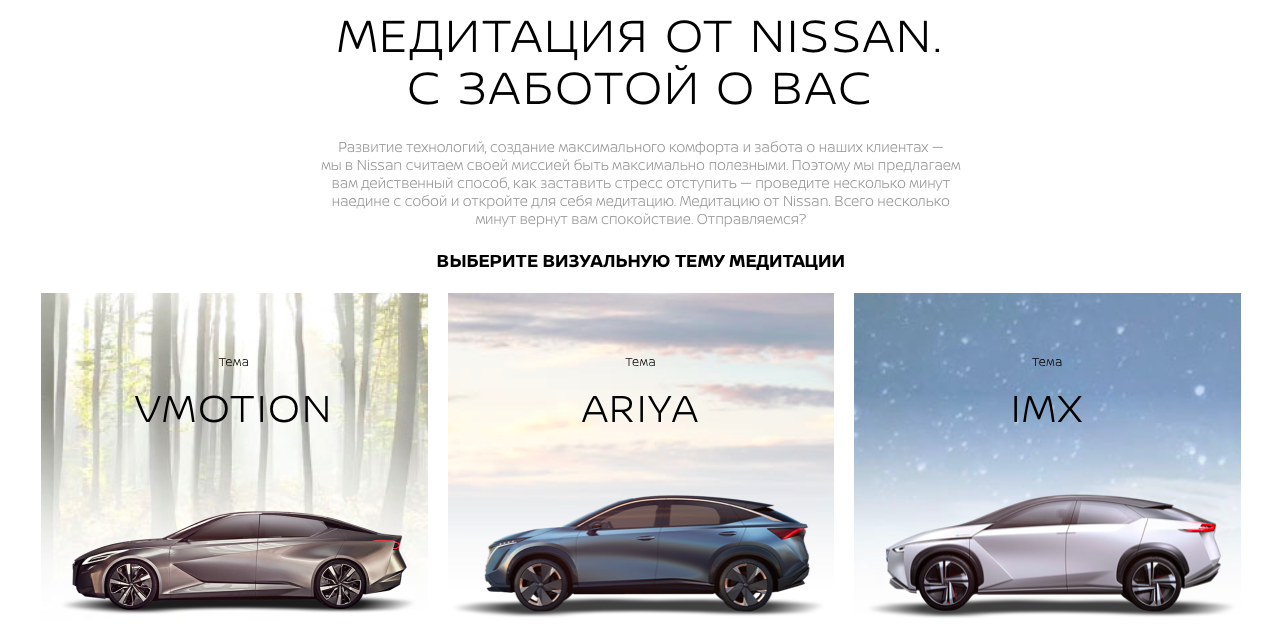 В Nissan считают своей миссией быть максимально полезными. Поэтому бренд предложил действенный способ заставить стресс отступить — проведите несколько минут наедине с собой и откройте для себя медитацию.