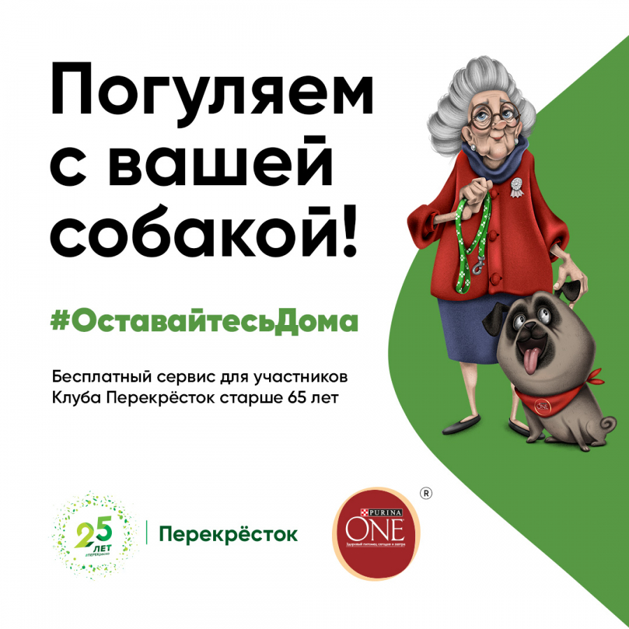 Пожилые люди тяжелее переносят коронавирусную инфекцию COVID-19, поэтому им предписано соблюдать режим самоизоляции. Но как объяснить это собаке, которая привыкла гулять дважды в день? Со вниманием относясь к потребностям пенсионеров и их питомцев, «Перекрёсток» и Purina One запустили бесплатный сервис по выгулу собак для владельцев старше 65 лет.