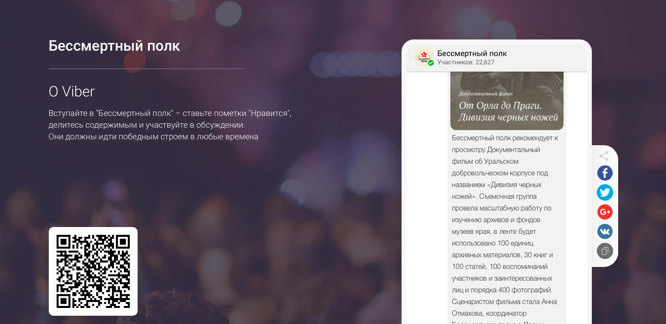 Сообщество гражданской инициативы появилось в Viber накануне Дня победы и объединило более 16 тыс. участников. Любой человек, не выходя из дома, мог рассказать историю своих родственников — свидетелей и участников Великой Отечественной войны.