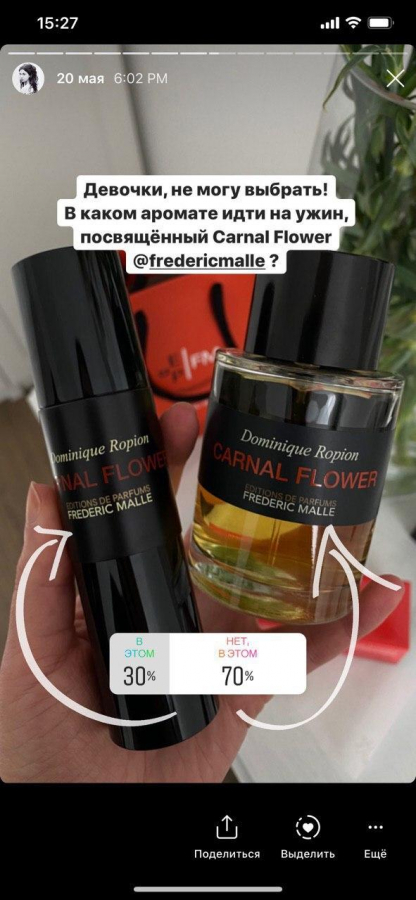 В компании эксперта парфюмерного дома EDPFM, который презентовал на ужине аромат Carnal Flower, гости пробовали пять блюд, перекликающихся по вкусу с гаммой этого аромата, а также три вида вина. Гастрономический сет был доставлен гостям перед самым началом онлайн-мероприятия, а в дополнение к нему гостям подарили миниатюру аромата Frederic Malle.