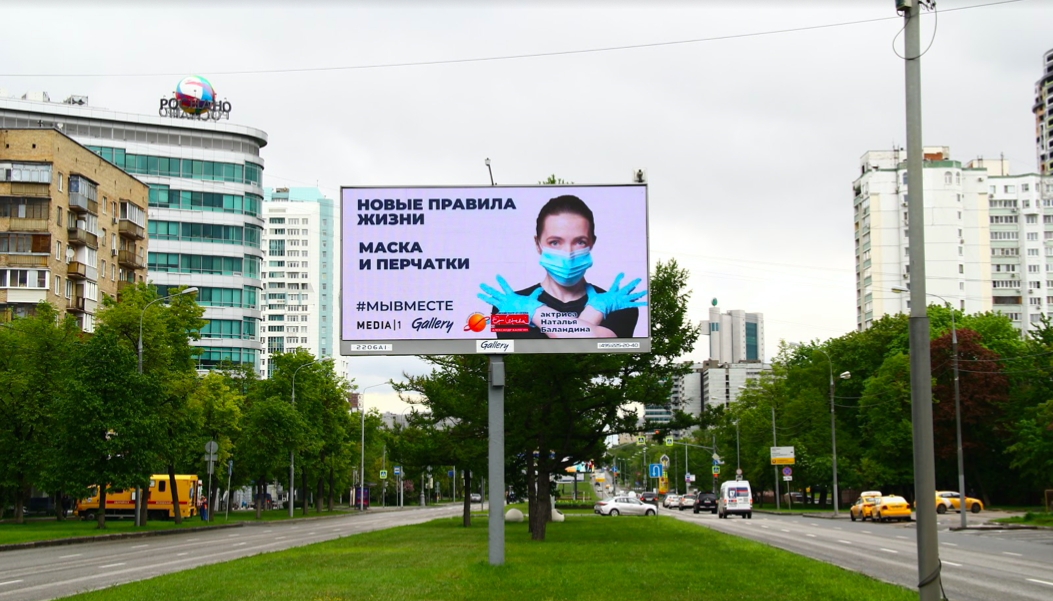 Информационные ролики с участием актеров театра Евгения Токарева, Натальи Баландиной и Анастасии Шумилкиной и хештегом #МЫВМЕСТЕ, через строгие, с точки зрения цветовой палитры, образы и язык жестов демонстрируют значимость ношения масок и перчаток в противостоянии вирусу. Они также создают художественную интерпретацию мер безопасности как новой социальной нормы. Дизайн-макеты кампании были разработаны креативной командой Gallery.