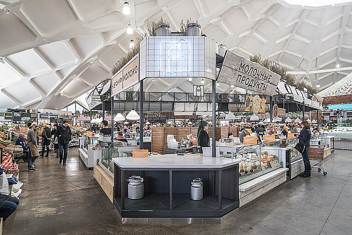 Ремонт на Даниловском рынке наконец-то завершен. Команда архитекторов полностью пересмотрела функциональное зонирование рынка. Здание сохранило свой архитектурный облик, но чердак превратился в мансарду с кулинарной школой, а рядом появилась площадь со скамейками и деревьями. Сегодня на рынке можно попробовать самые разные блюда – повара готовят пекинскую утку, фалафель, осьминогов, армянскую долму и марокканский тажин, бургеры и лепешки. Новому Даниловскому требовался свой фирменный стиль, который разработала Мастерская Димы Барбанеля. Обзор на Sostav