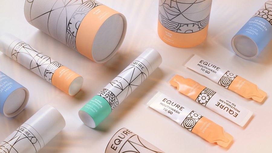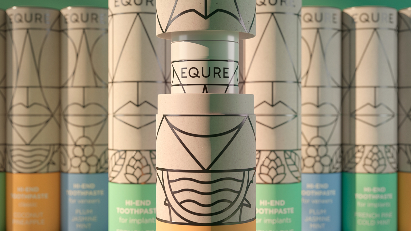 Зубная паста Equre выпускается не в традиционных тюбиках, а во флаконах. Форма внешней упаковки в виде тубуса помогает бренду отстроиться от конкурентов на полке. Дополнительной ценностью упаковки может стать его превращение в дорожный кофр для зубной щетки.