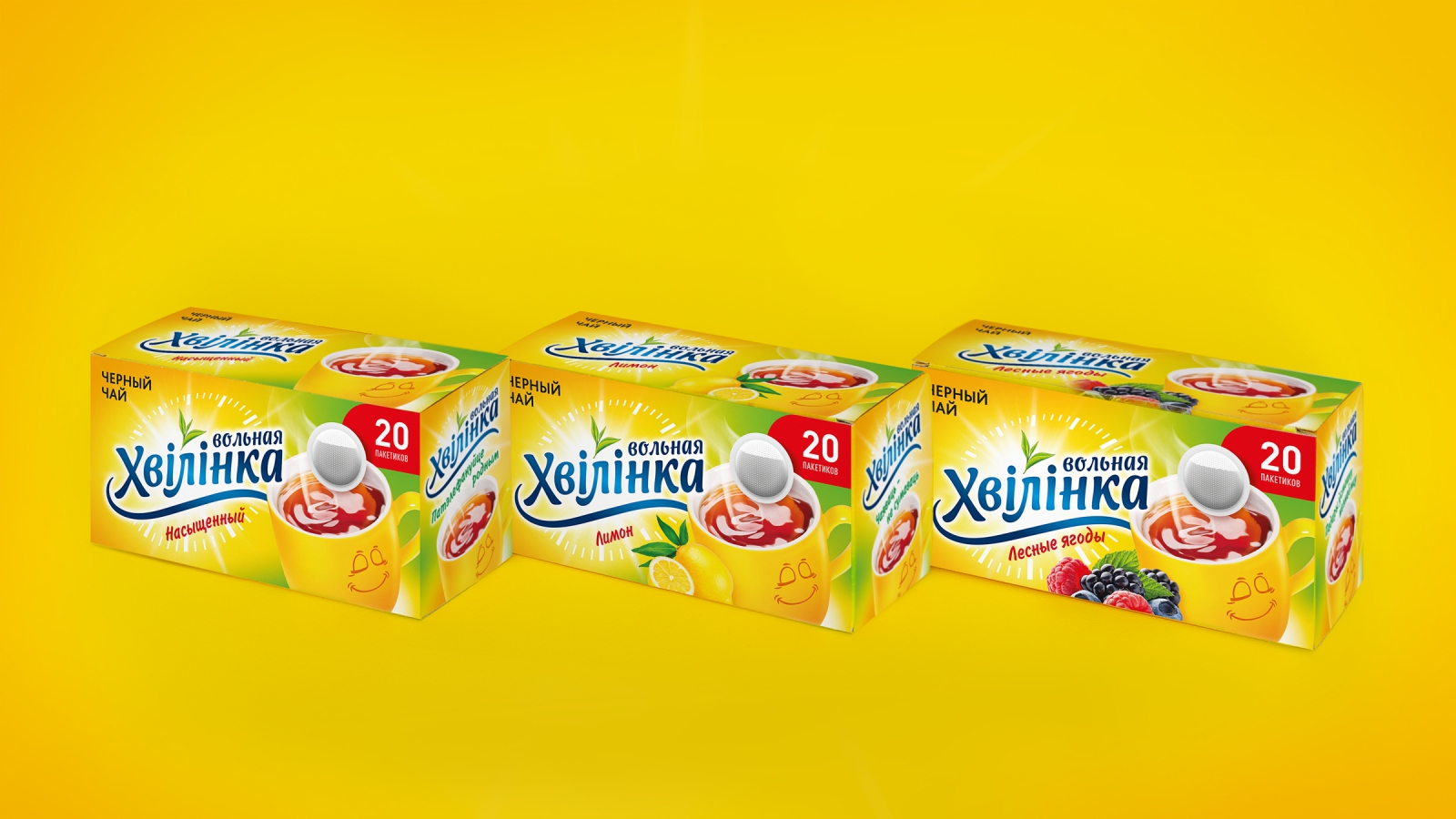 Дизайн упаковки отражает характер продукта — легкий, дружелюбный, демократичный. Буквальным символом свободной минутки («Вольная хвілінка») стал циферблат. Историю о приятном времени за чашечкой чая поддерживают теплый желтый фон, смайлы и душевные коммуникации.