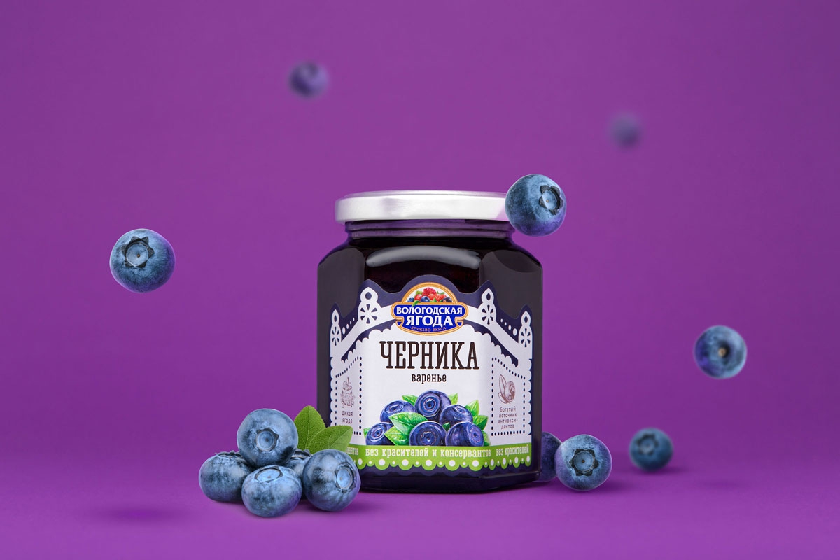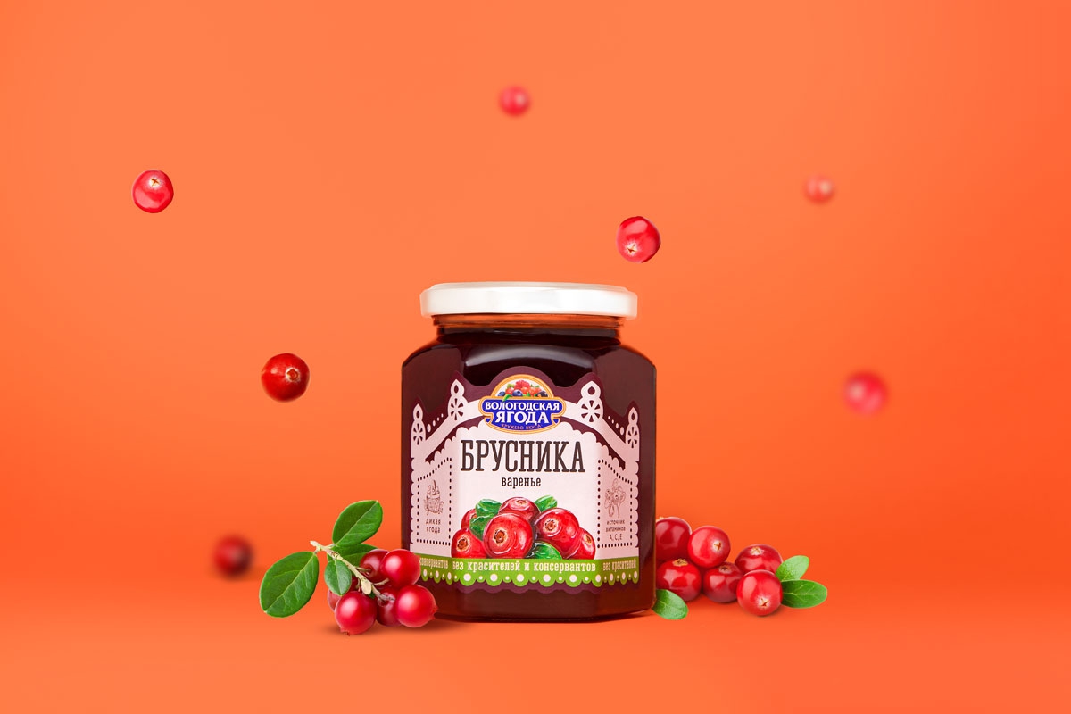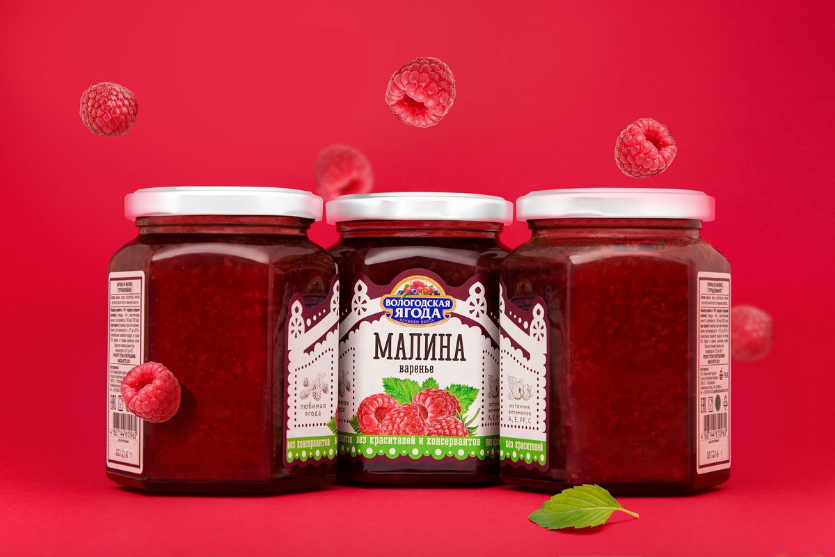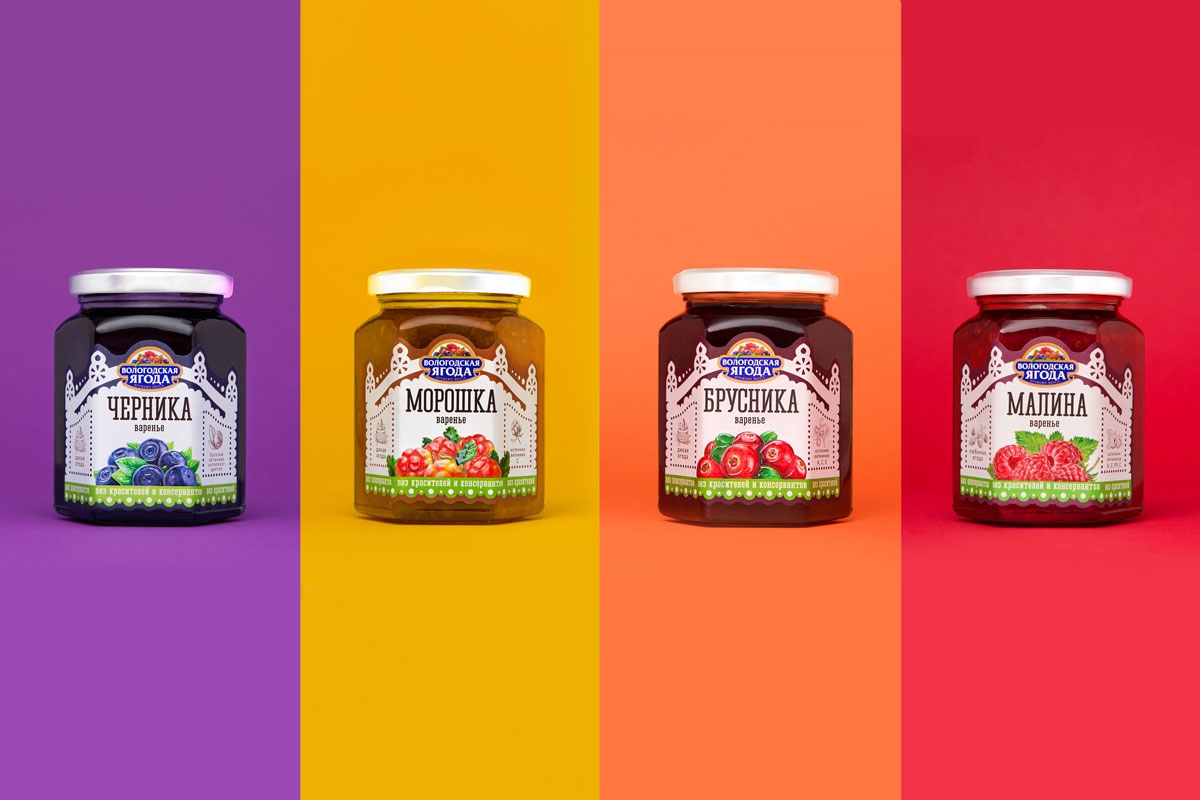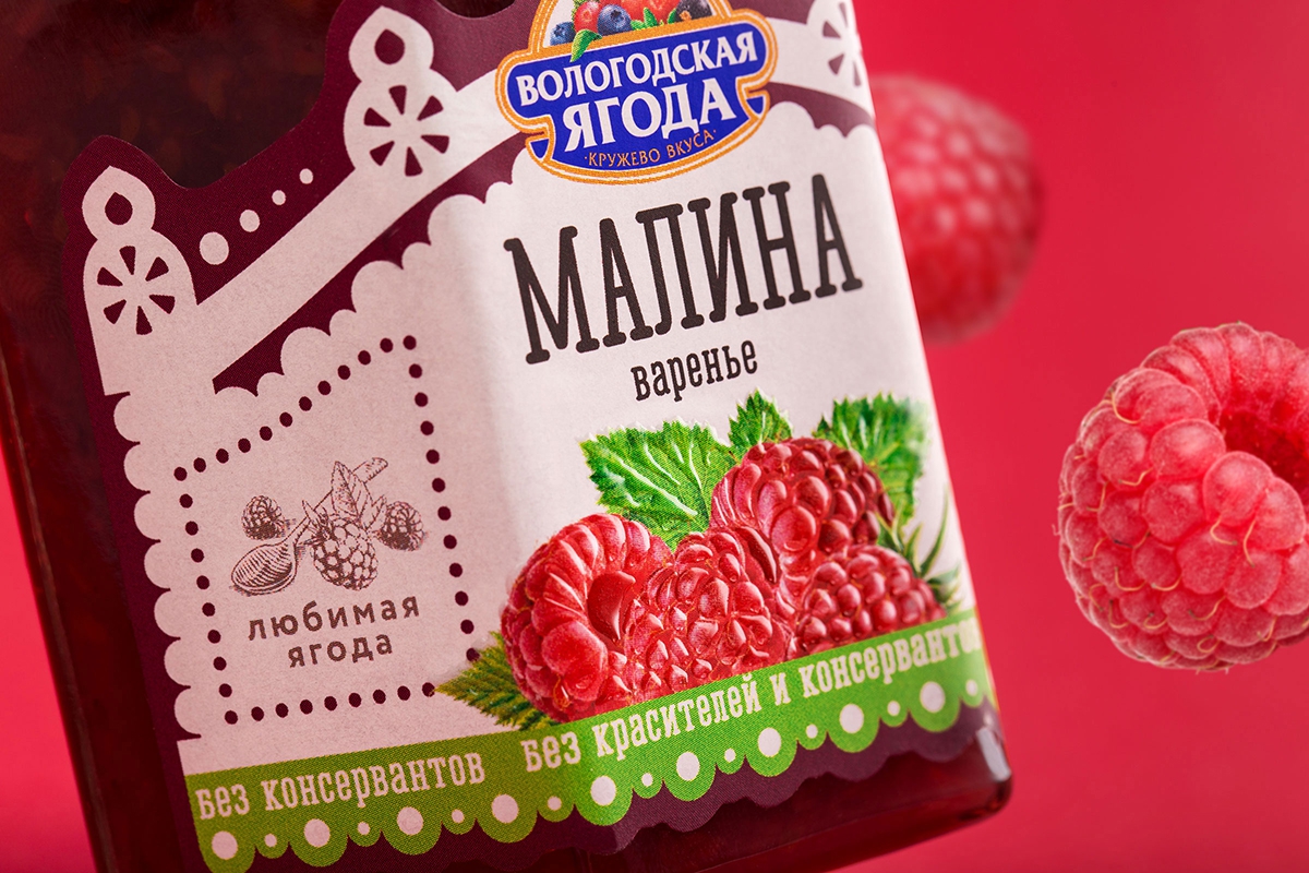 Необходимо было разработать современное дизайн-решение для этикетки, которое позволило бы ему выглядеть актуально и отметило преимущества. Так как в портфеле группы компаний есть и другие линейки варенья, было принято решение отстроить продукцию ТМ с помощью привязки к месту рождения — Вологде.