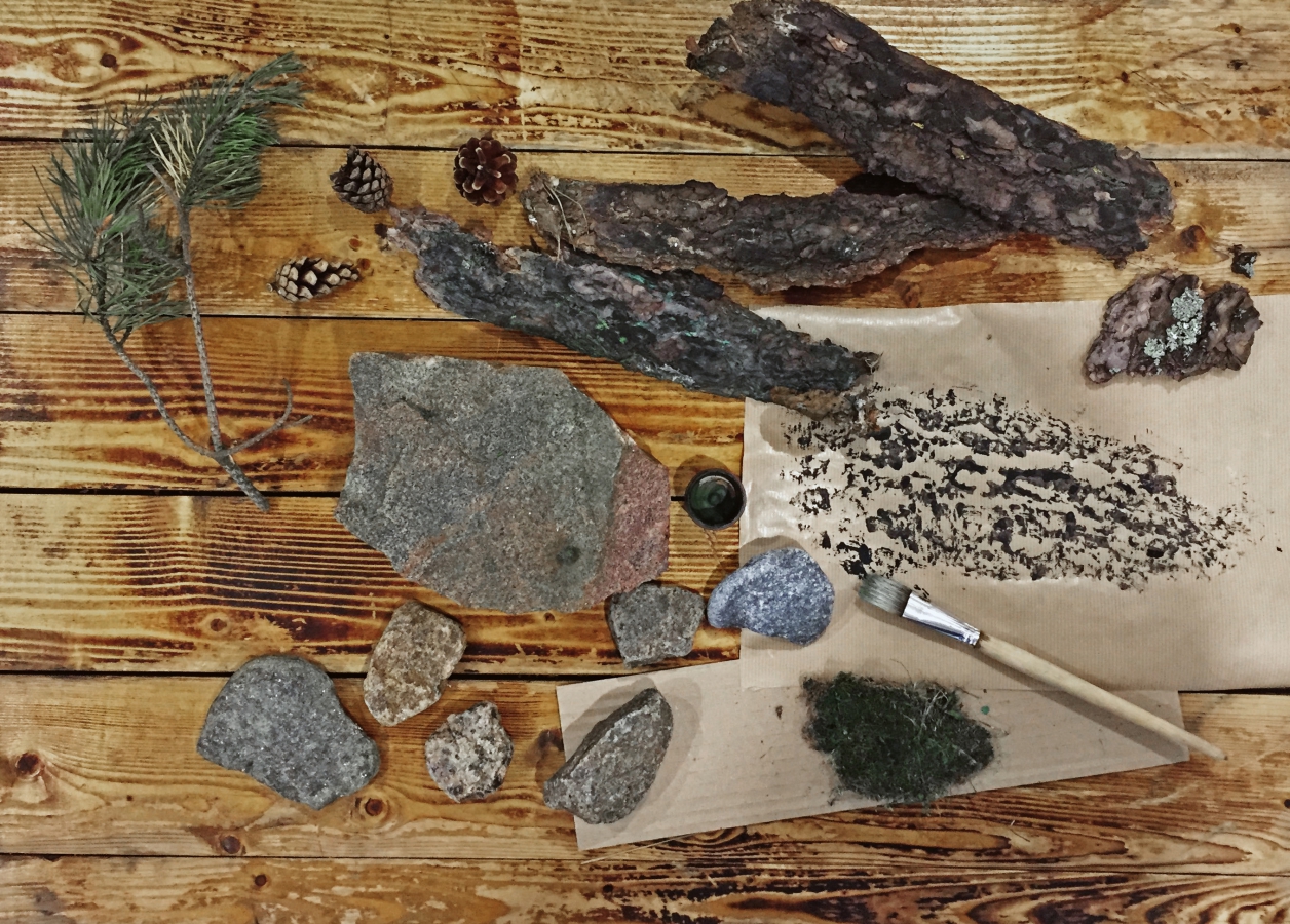 Именно она буквально оставила свой след на упаковке: оригинальные узоры на крафт-бумаге — это настоящие отпечатки сосновой коры, веточек и камней, собранных на берегу Финского залива.