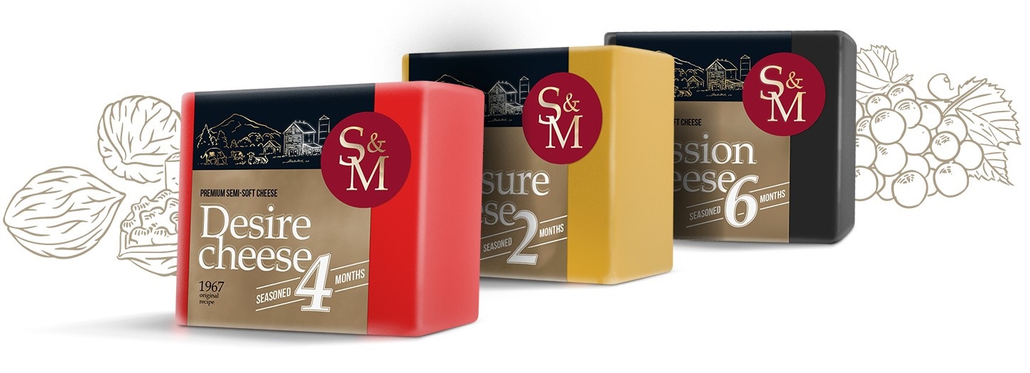 Для каждого сыра была разработана легенда, акцентирующая внимание на способе приготовления сыра. Композицию поддерживает гравюра европейской фермы, она подчеркивает полный цикл производственных этапов и формирует образ камерных условий ручного труда и с большой любовью. Используемые в дизайне этикетки гравюры создают ощущение высокого качества сыра и подчеркивают благородство, эстетику и премиальность продукта.