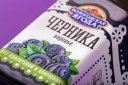 Логотип уже говорит о происхождении лакомства, впечатление подкрепляет необычная форма этикетки — для ее создания использовались реальные примеры зодчества Вологодской области. Тонкий орнамент, выполненный в белом цвете, вызывает ассоциации с кружевом, укрепляя связь с неймом. УТП рассказывают о натуральном составе: это богатый источник антиоксидантов, созданный без применения красителей и консервантов.