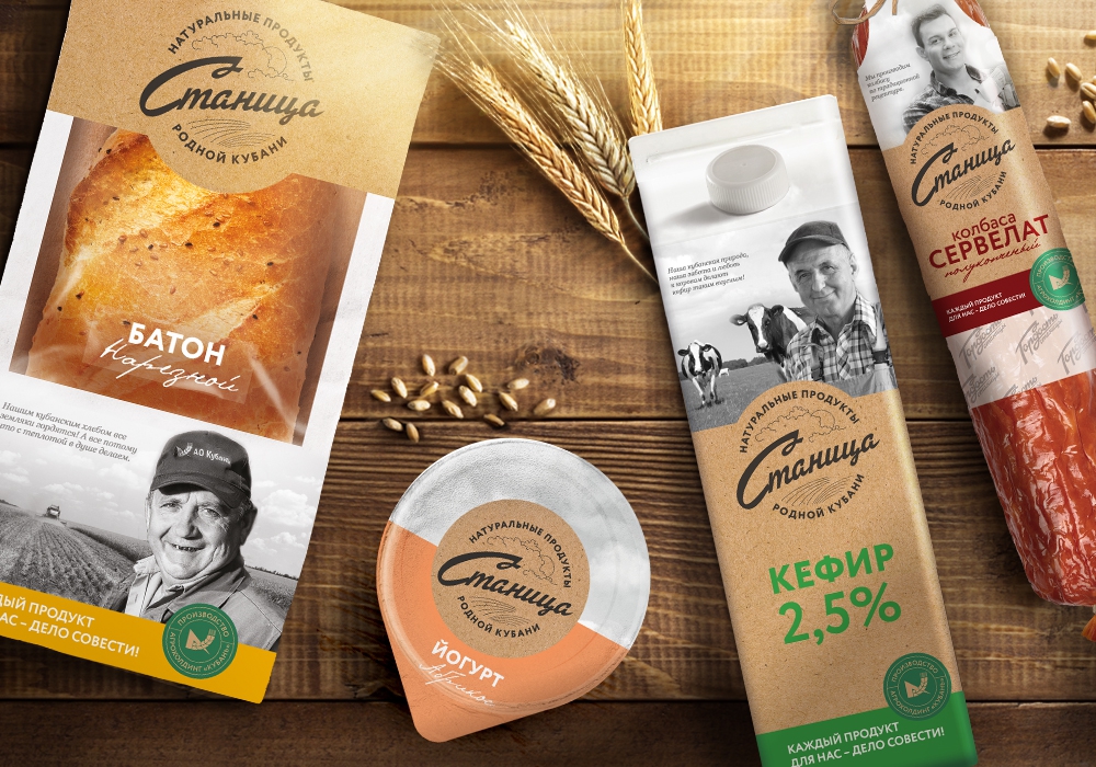 Натуральность, свежесть, понятный состав, отсутствие ненужных добавок - отличительные черты продукции нового бренда. Эти ключевые ценности дизайнеры выразили в слогане «Натуральные продукты родной Кубани».
