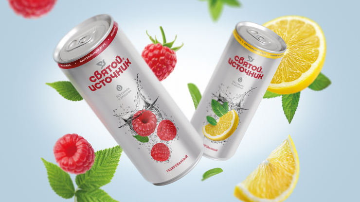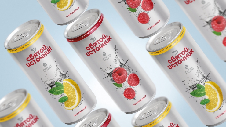 Дизайн упаковки фруктовой газированной воды «Святой источник» от