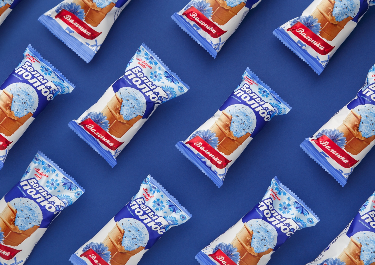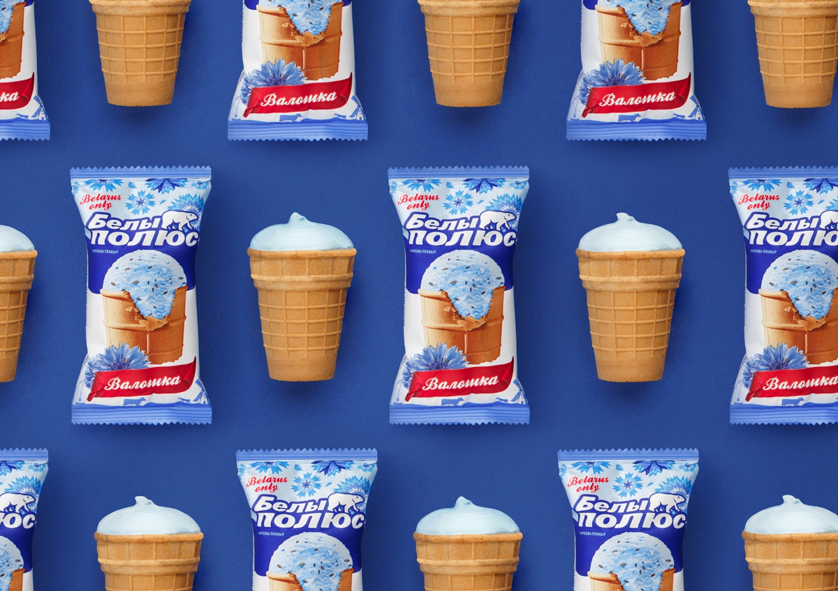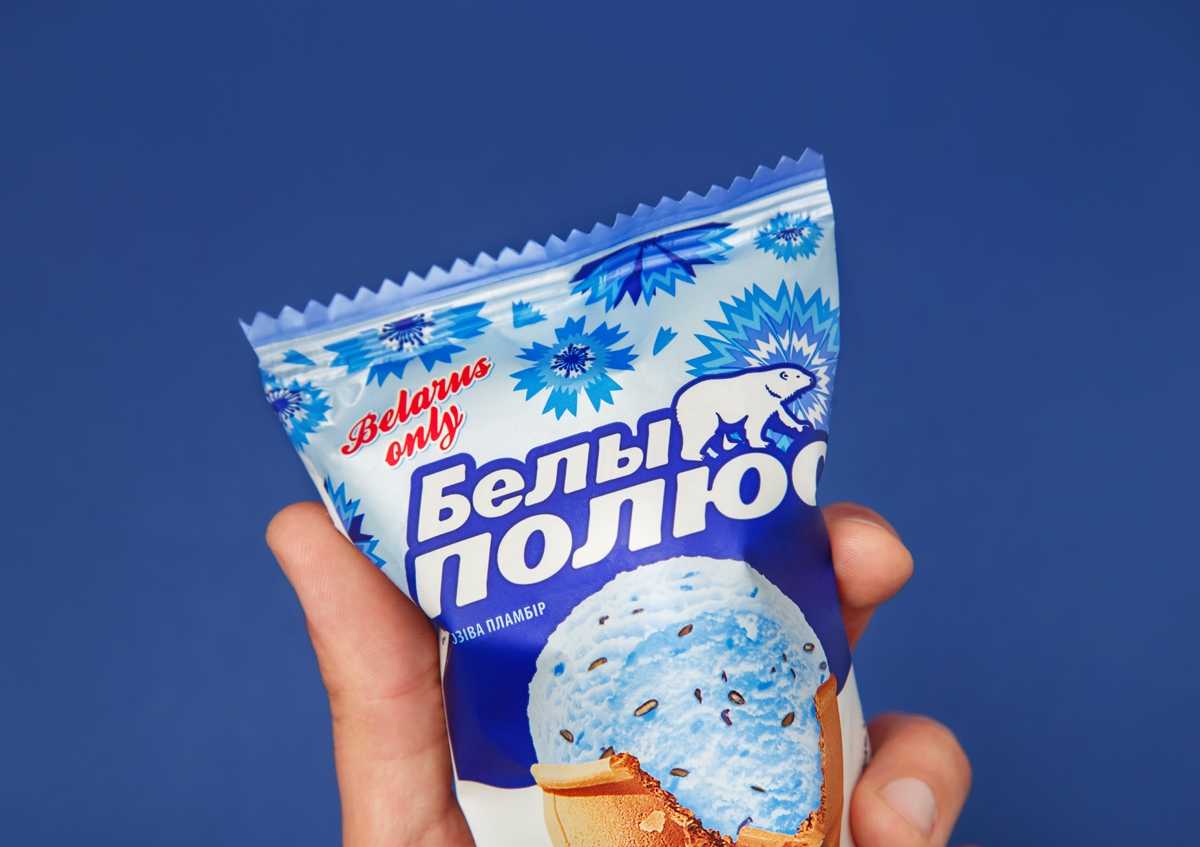 Белорусская фабрика «Ингман Мороженое» начала выпуск мороженого с национальным колоритом: в его состав входят лепестки василька и семена льна, а стаканчик изготовлен из ржаной муки. Было принято решение вывести продукт на полки в рамках ТМ «Белы полюс». Для новой позиции требовалось разработать дизайн упаковки, который рассказал бы об уникальности десерта и сохранял константы визуального образа торговой марки.
