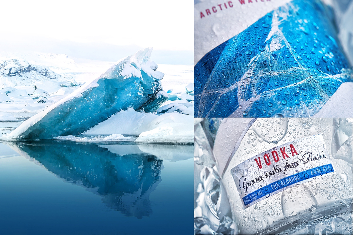 Для упаковки продукта премиум-сегмента использован сложный в исполнении прием — коутинг, при котором бутылка практически целиком покрывается белой краской. Окно на лицевой части позволяет увидеть фронтальное изображение — объемное и подсвеченное за счет эффекта линзы. Голографический блеск верхней этикетки, несущей функции контроля вскрытия, ассоциируется с северным сиянием. Специально разработанный геральдический символ — роза ветров — поддерживает статусный образ продукта. Подробнее на Sostav.