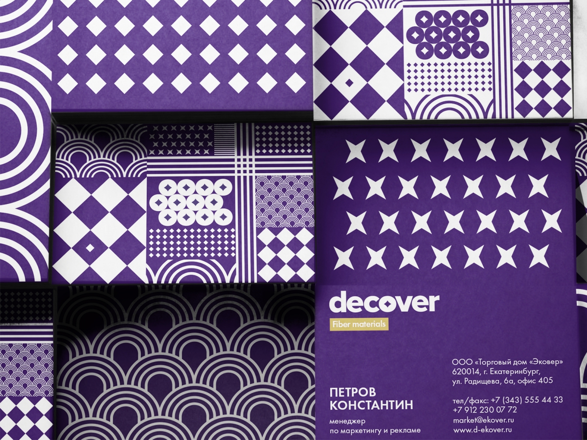 Похожий прием использован и для бренда Decover: здесь разнообразие узоров подчеркивает множество дизайн-решений, доступных благодаря использованию материалов новой марки. Кроме того, в коммуникациях обеих марок, помимо графики, могут использоваться и фотографии — особенно там, где потребителю важно увидеть результат современных отделочных решений.